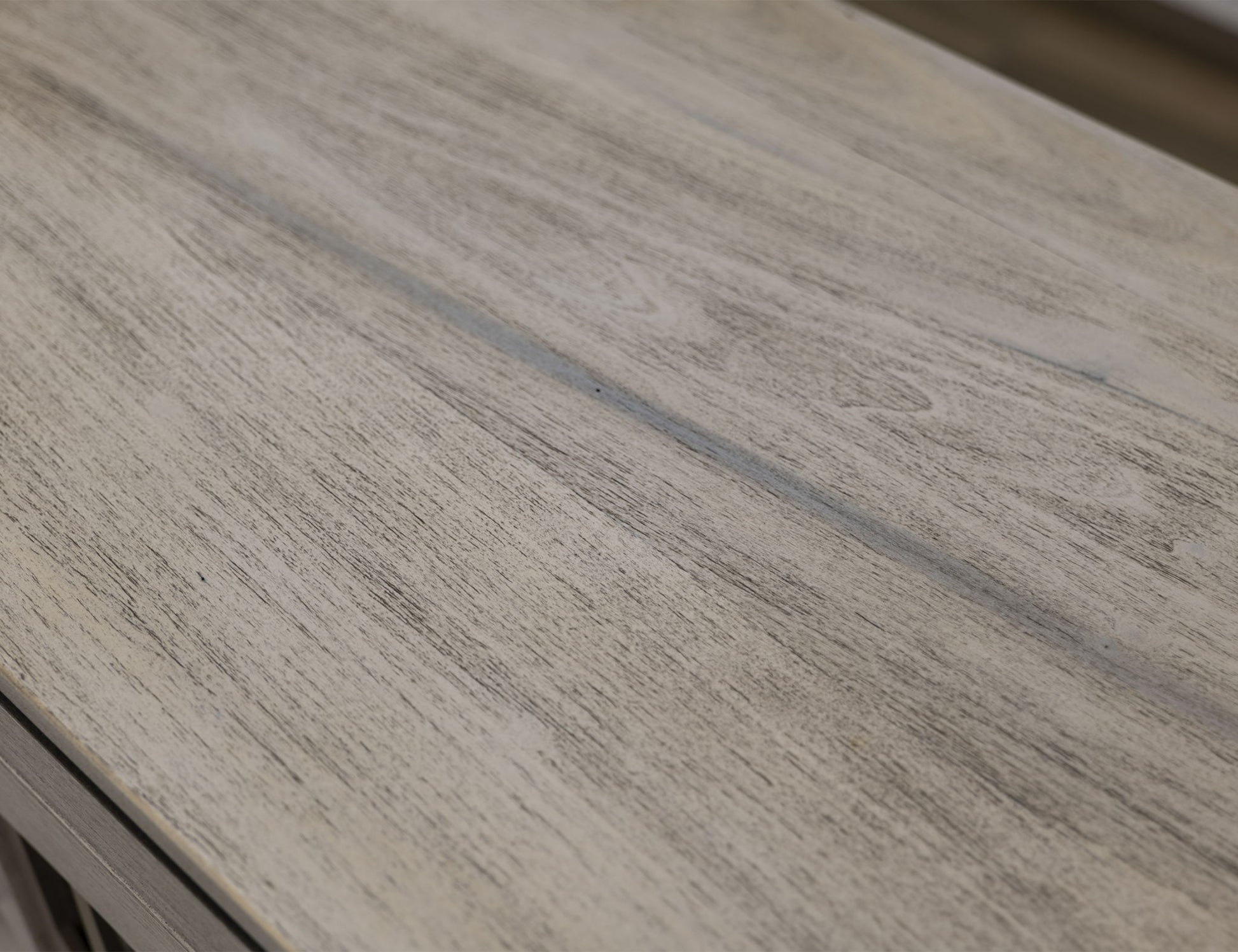 - Multi-step lacquer in ivory finish on lightly distressed, hand-rubbed wood.