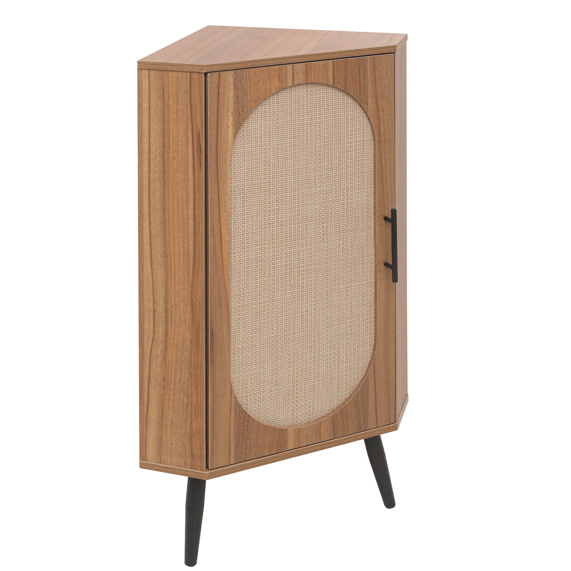 Corner Cabinet, Rattan Door, Freestanding Corner Tables For Small Spaces, Corner Shelf Stand For Living Room, Kitchen, Bathroom, Bedroom - Walnut