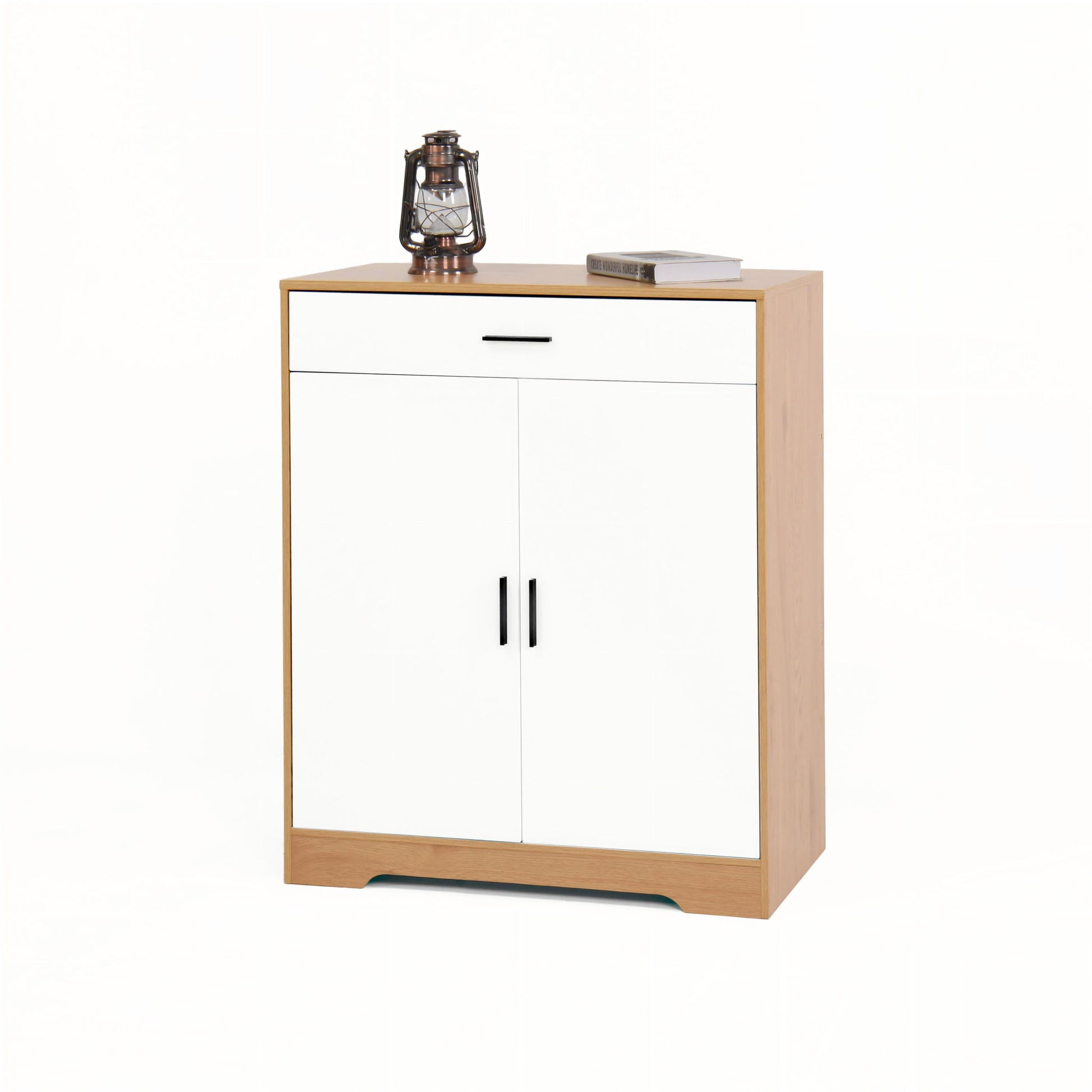 Freestanding Wooden Shoe Cabinet Organizer With Adjustable Shelves And Drawer - Natural / White