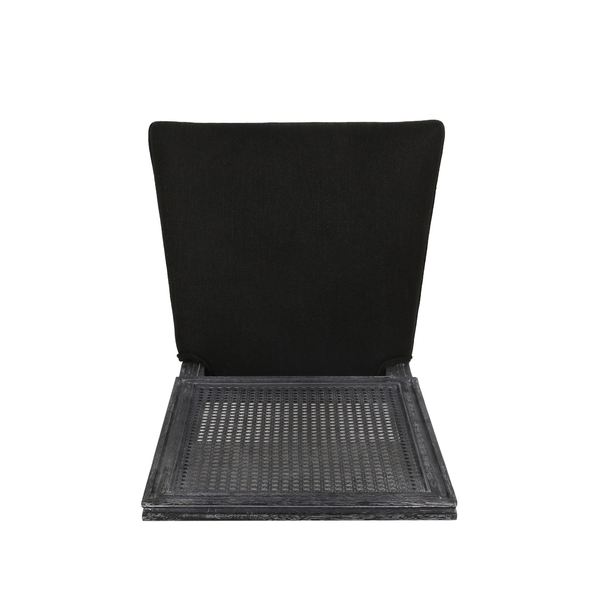 French Country Dining Chair With Rectangular Cane Backrest And Smooth Upholstered Seating