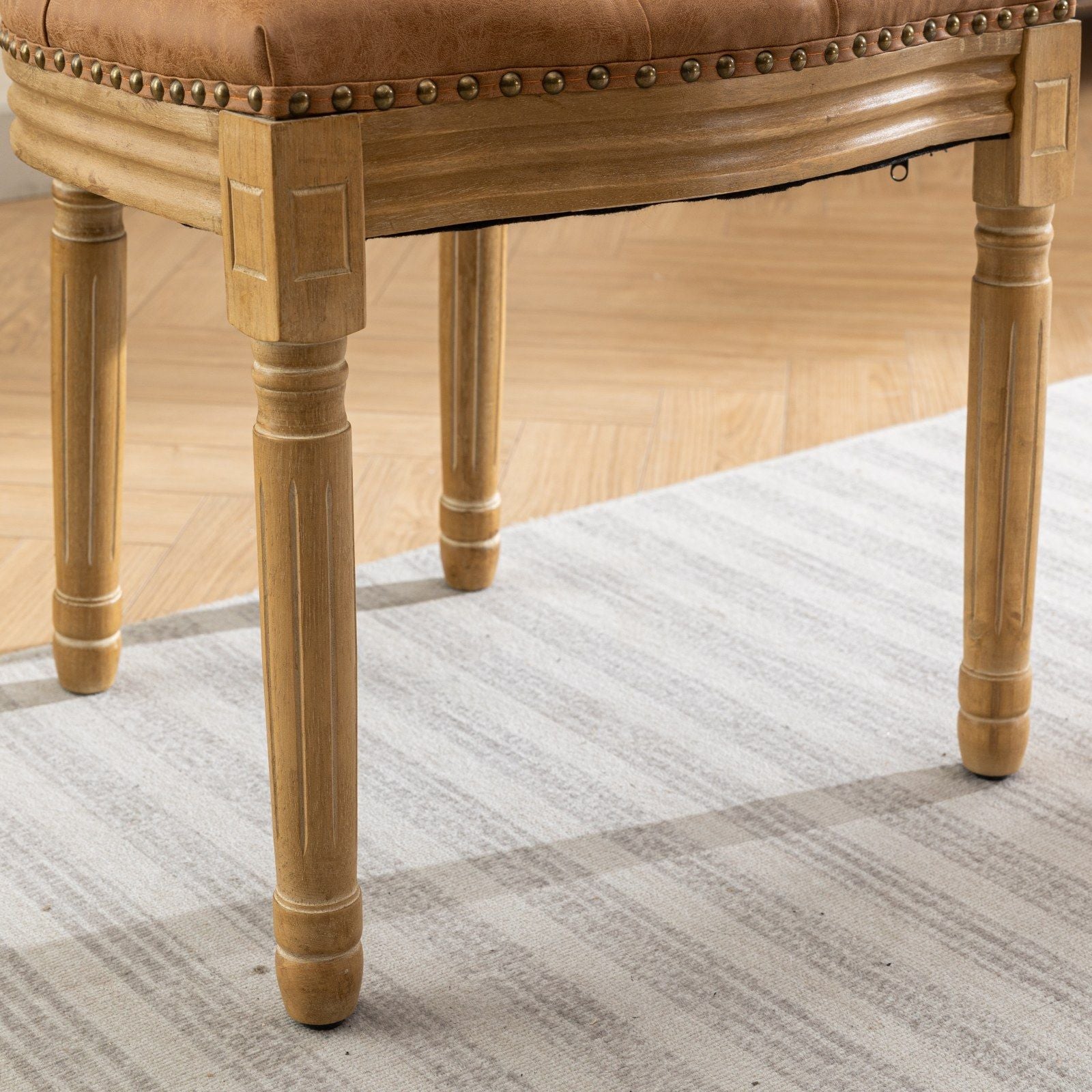 French Style Solid Wood Frame Antique Painting, Hand-Pulled Buckle Decoration Artificial Leather Dining Chair With Nailhead Trim, Wood Legs, Density Foam, Steel Spring Inner (Set of 2) - Light Brown