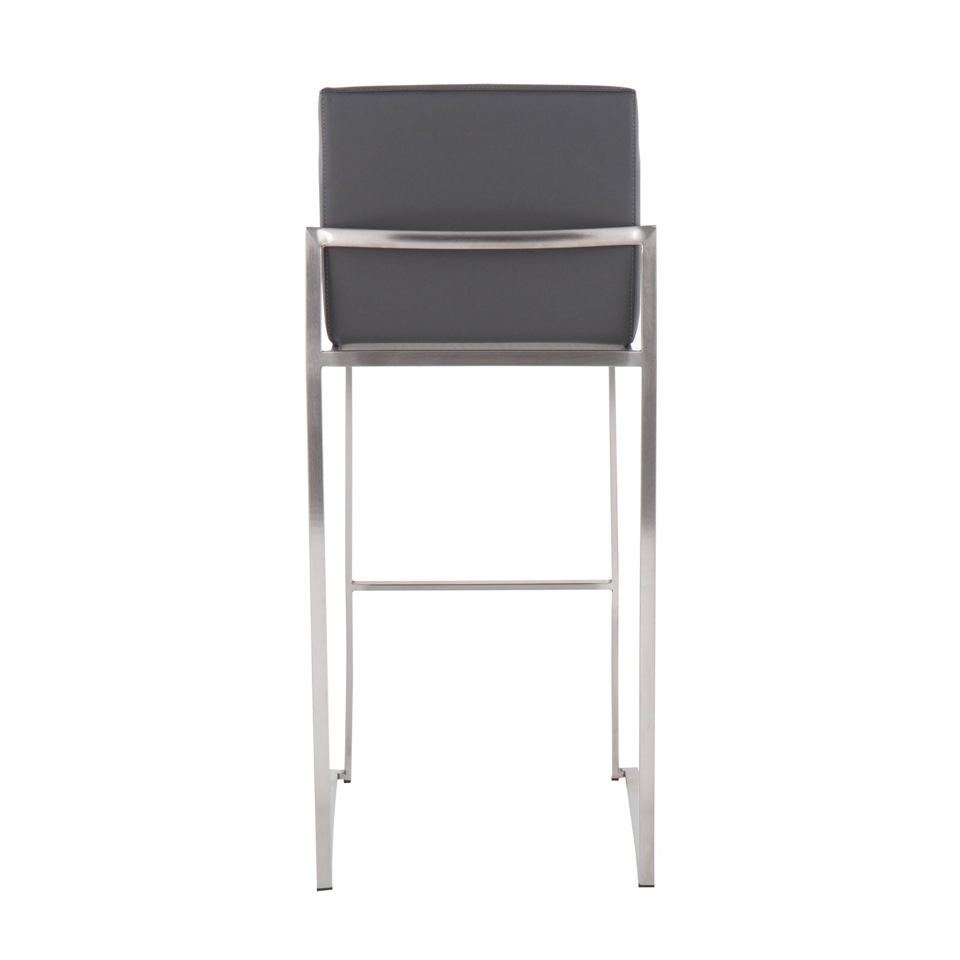 Fuji - Contemporary High Back Barstool (Set of 2) - Gray - Faux Leather