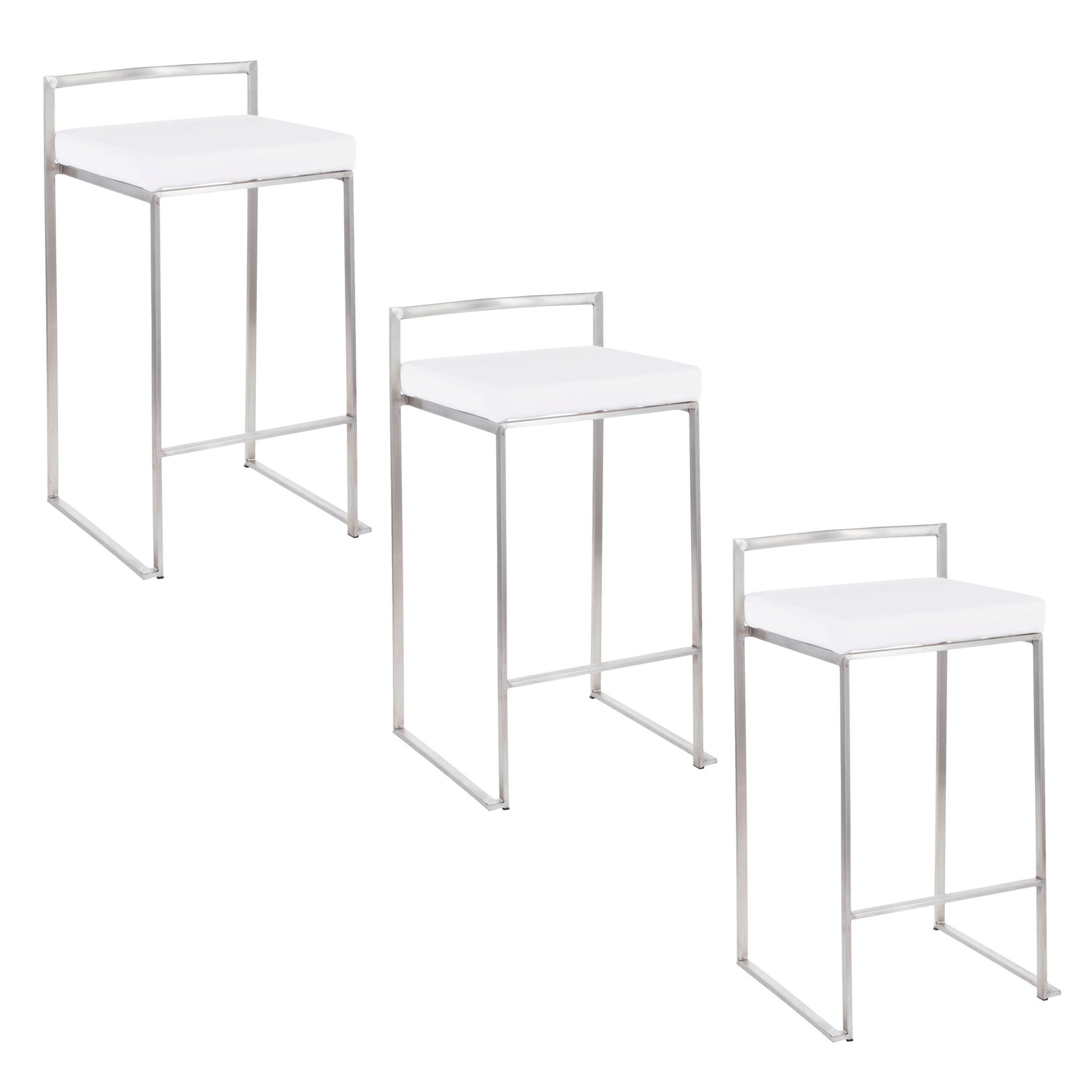 Fuji - Contemporary Stackable Counter Stool (Set of 3) - White - Velvet