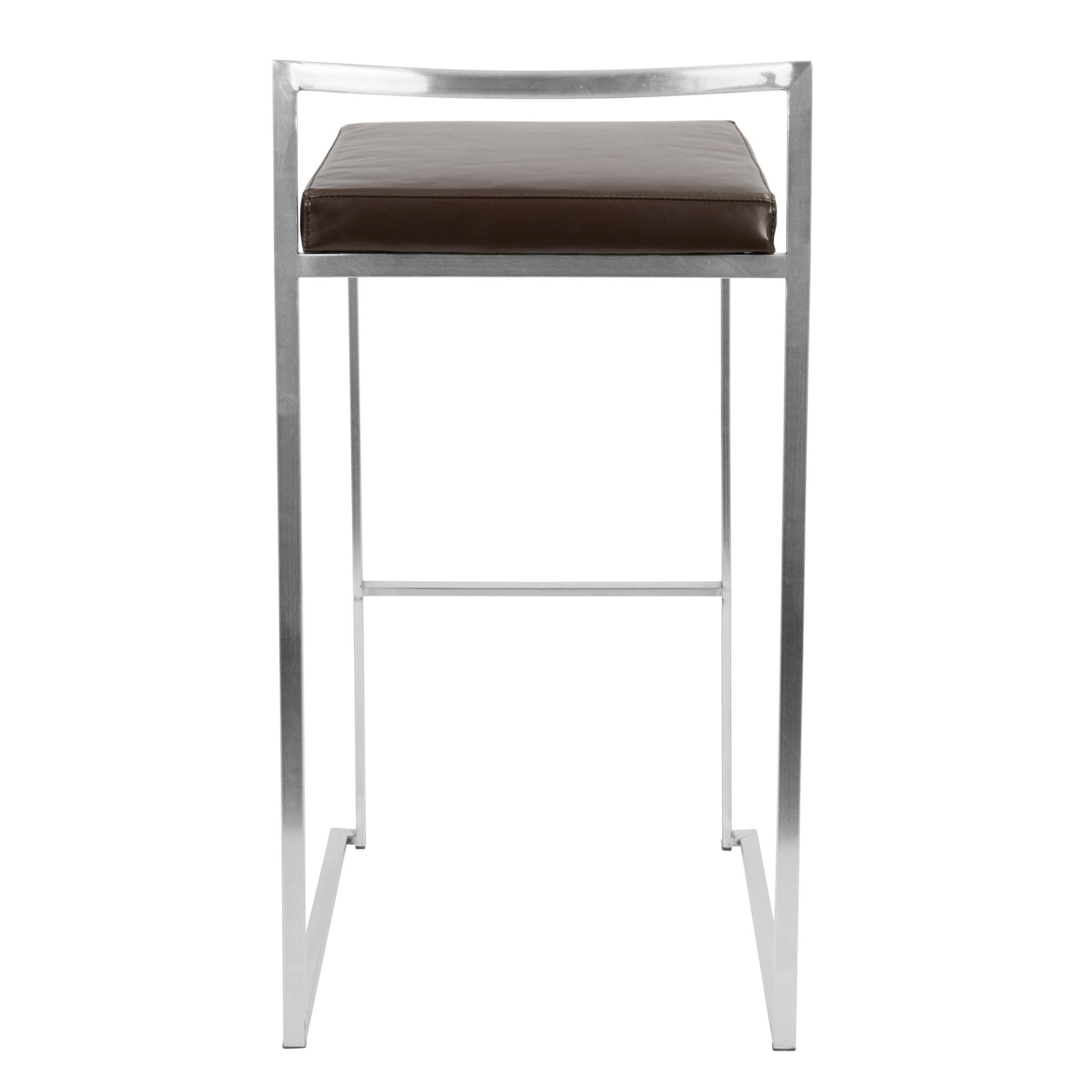 Fuji - Contemporary Stackable Barstool (Set of 2) - Brown - Faux Leather
