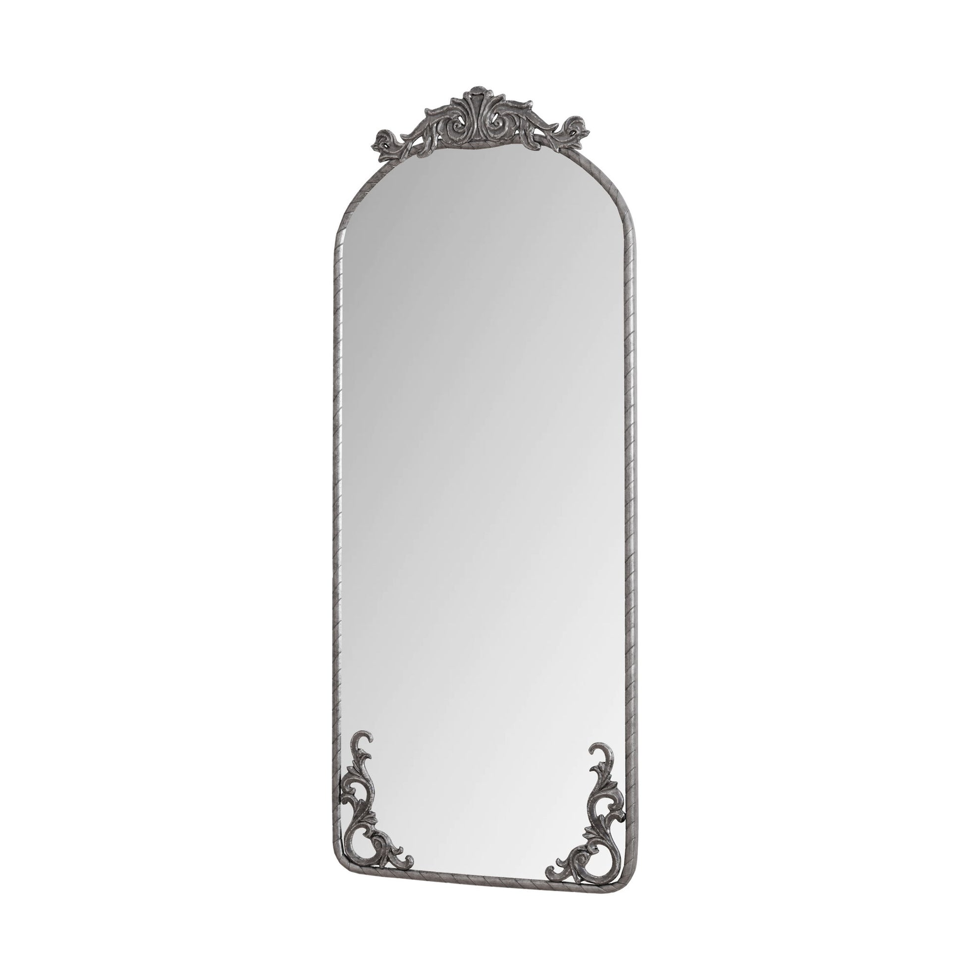 Arched Full Body Mirror With Vintage Carved Applique - Antique Silver