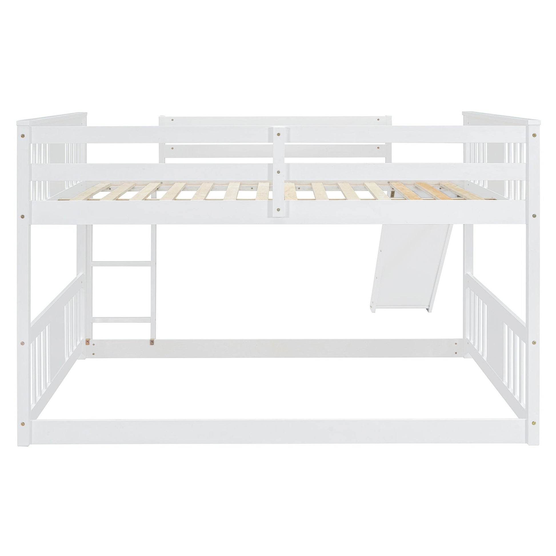 Full Over Full Bunk Bed With Ladder With Slide - White