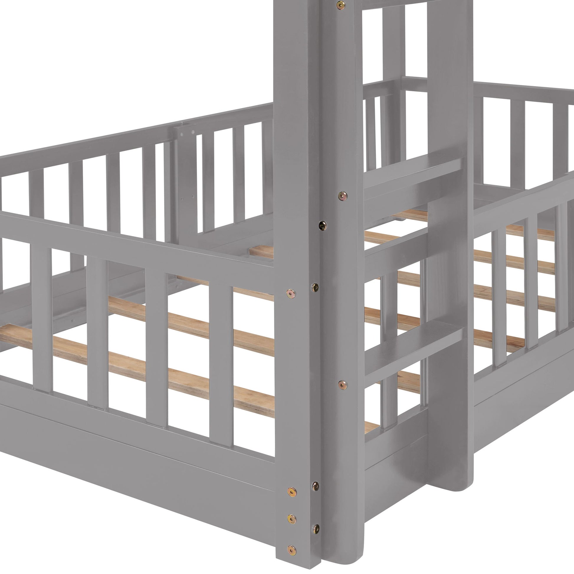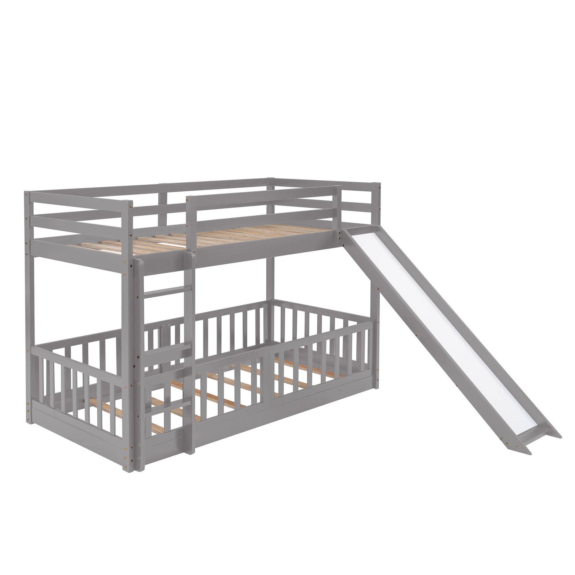 Twin Over Twin Classic Bunk Bed & Slide And Ladder - Gray