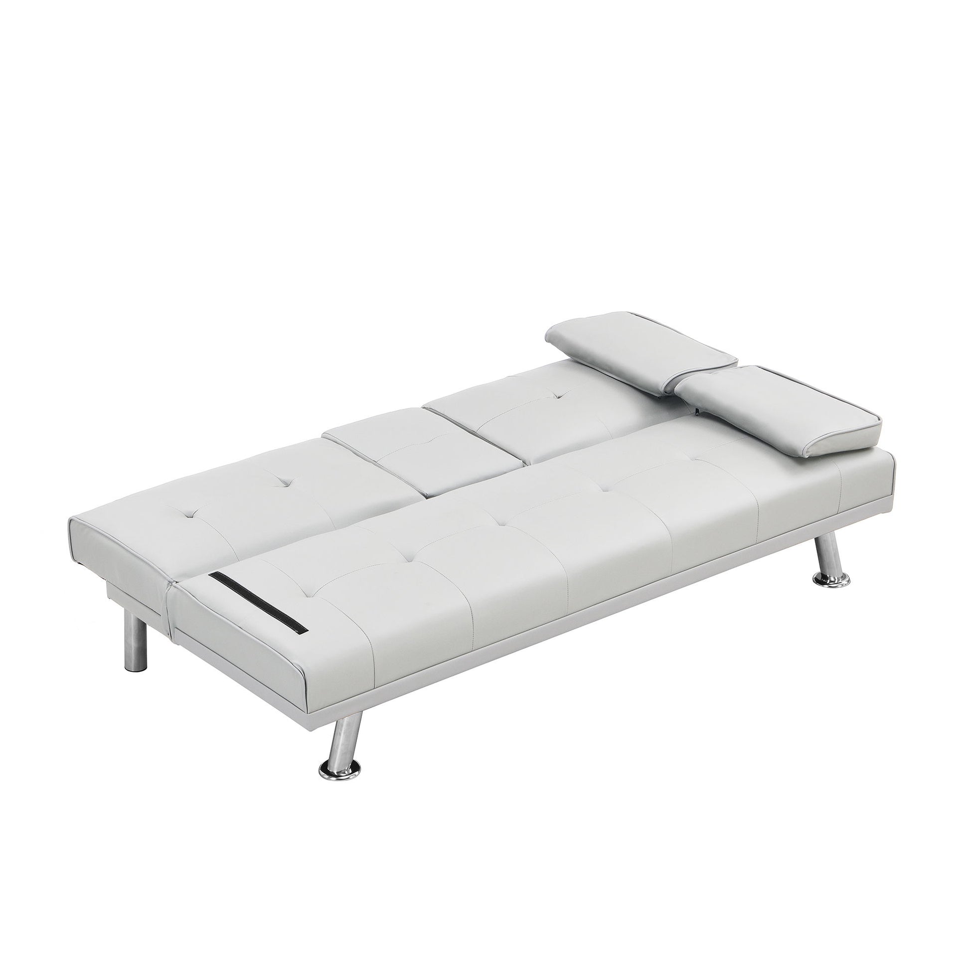 Futon Sofa Bed With Armrest Two Holders Wood Frame, Stainless Leg