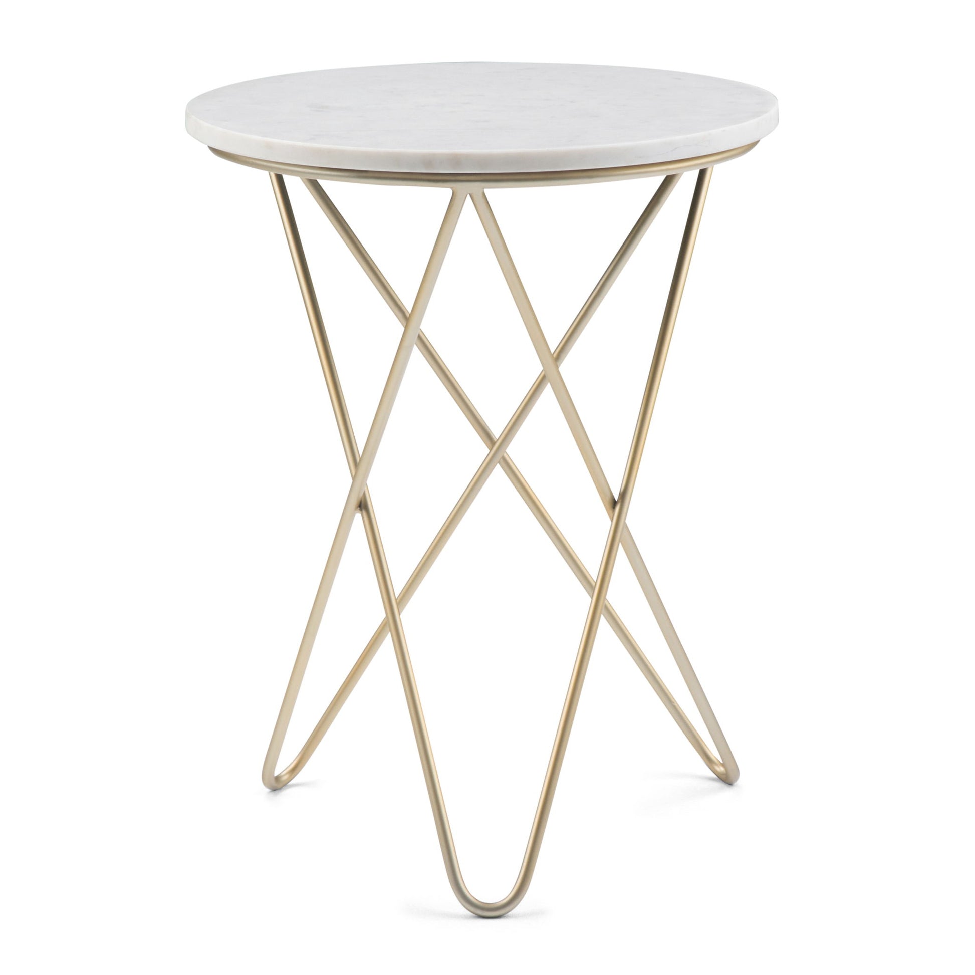 - Features marble reinforced with wood substrate to create a durable long lasting top, gold metal frame and hairpin legs