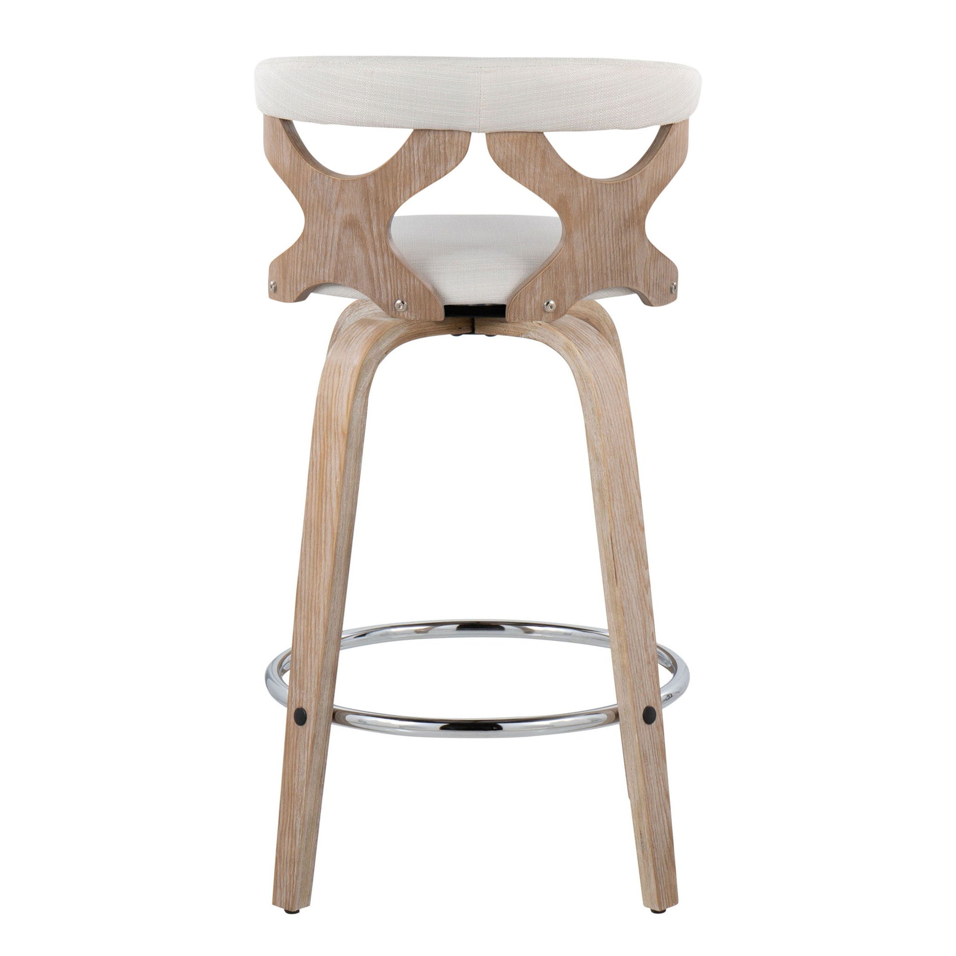 Gardenia - Contemporary Fixed Height Counter Stool With Swivel With Round Footrest (Set of 2) - White Washed / Cream