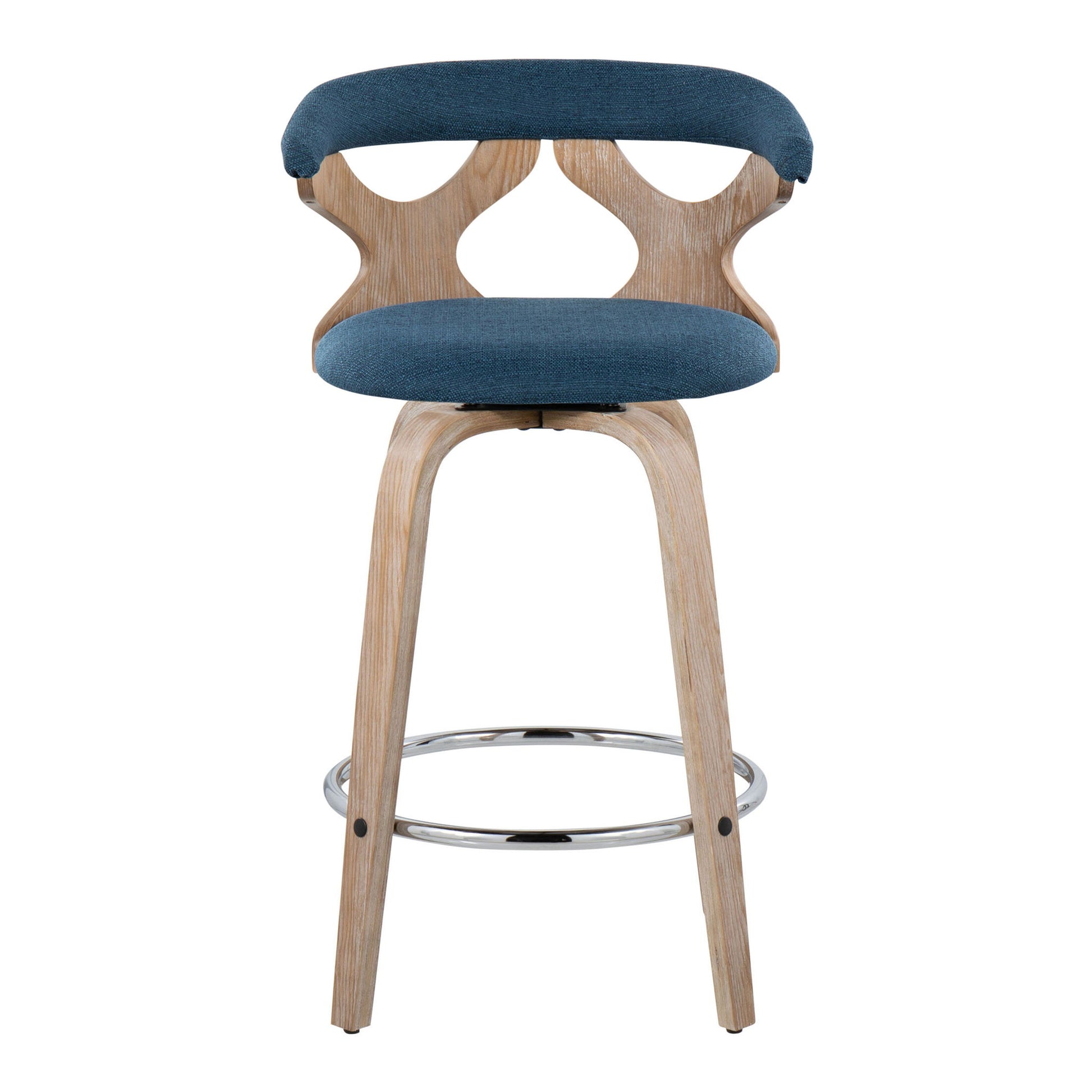 Gardenia - Contemporary Fixed Height Counter Stool With Swivel And Round Footrest (Set of 2) - Blue / White Washed
