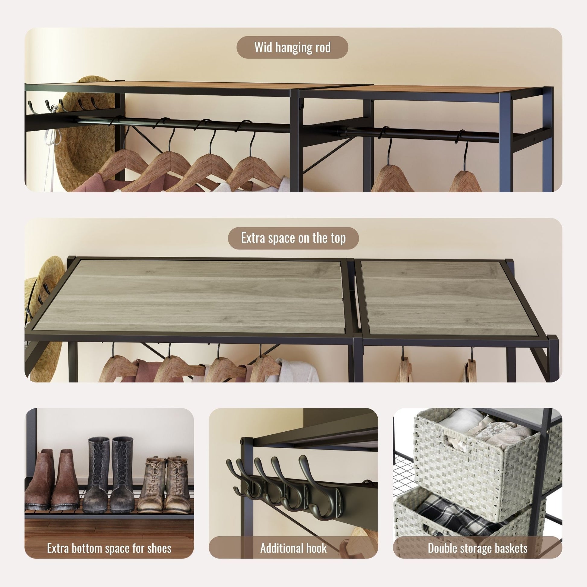 Garment Rack With Shelves, 2 Wicker Drawers, 4 Hooks, Organizer