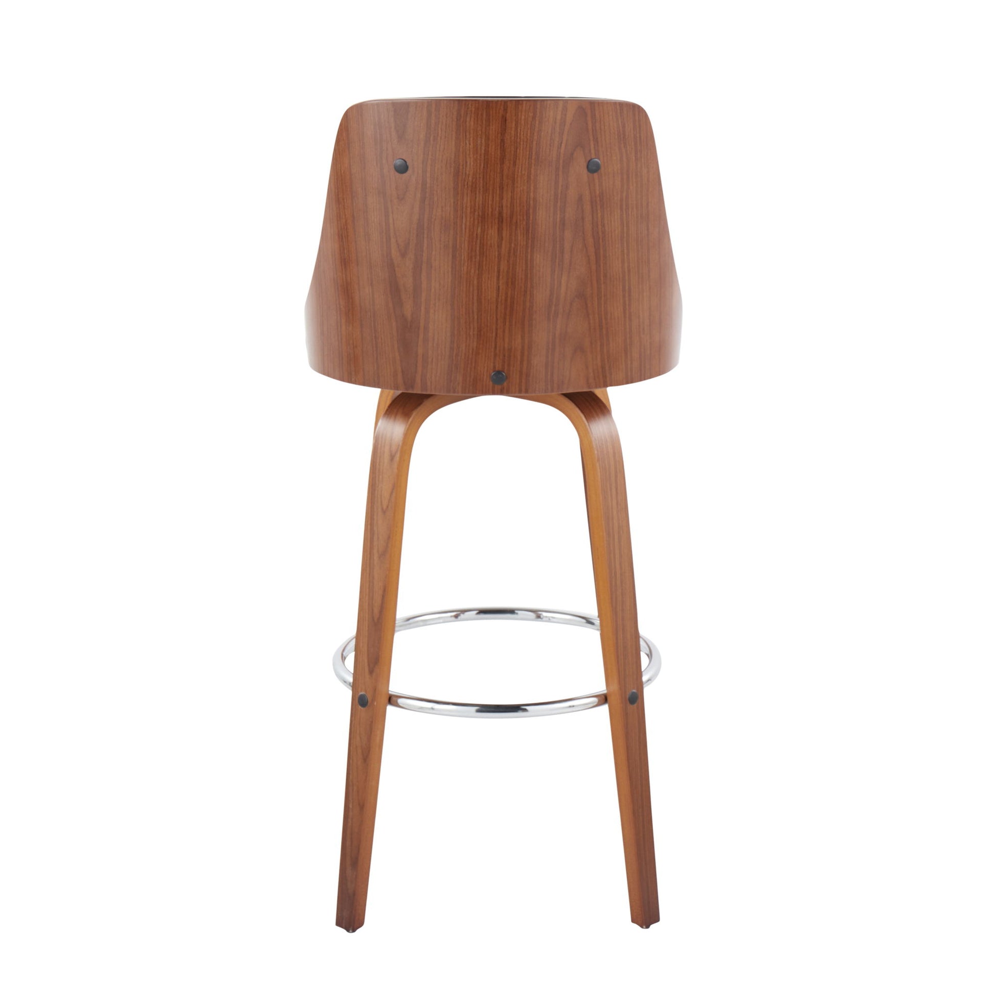 Gianna - Mid-Century Modern Fixed Height Barstool With Swivel With Round Footrest (Set of 2) - Walnut / White