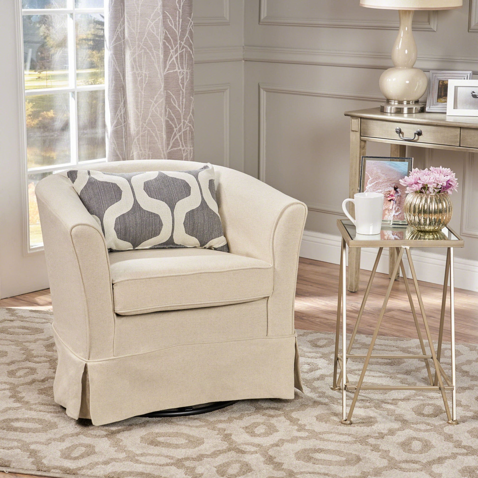 Glitter - Upholstered Swivel Chair With Loose Cover And Curved Back