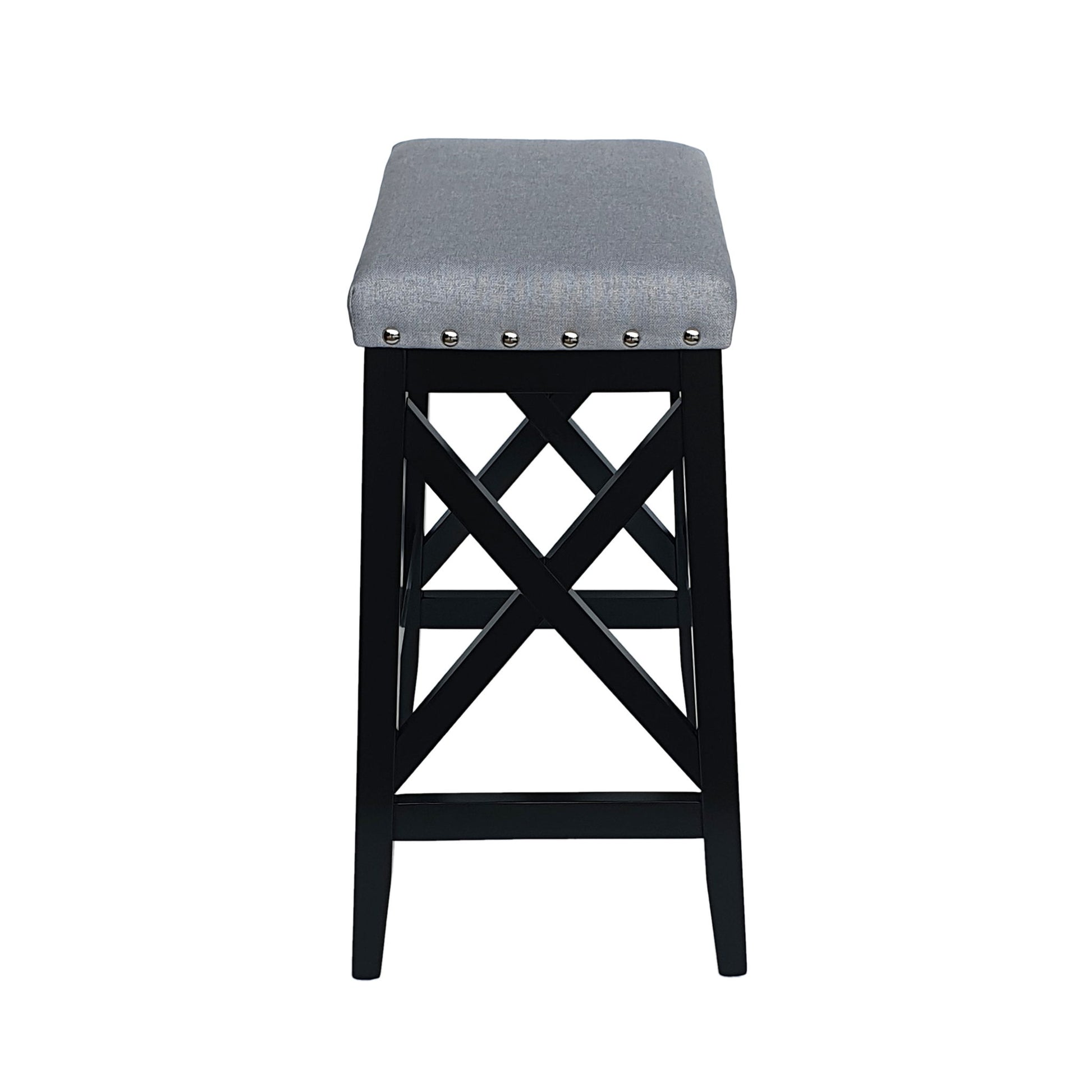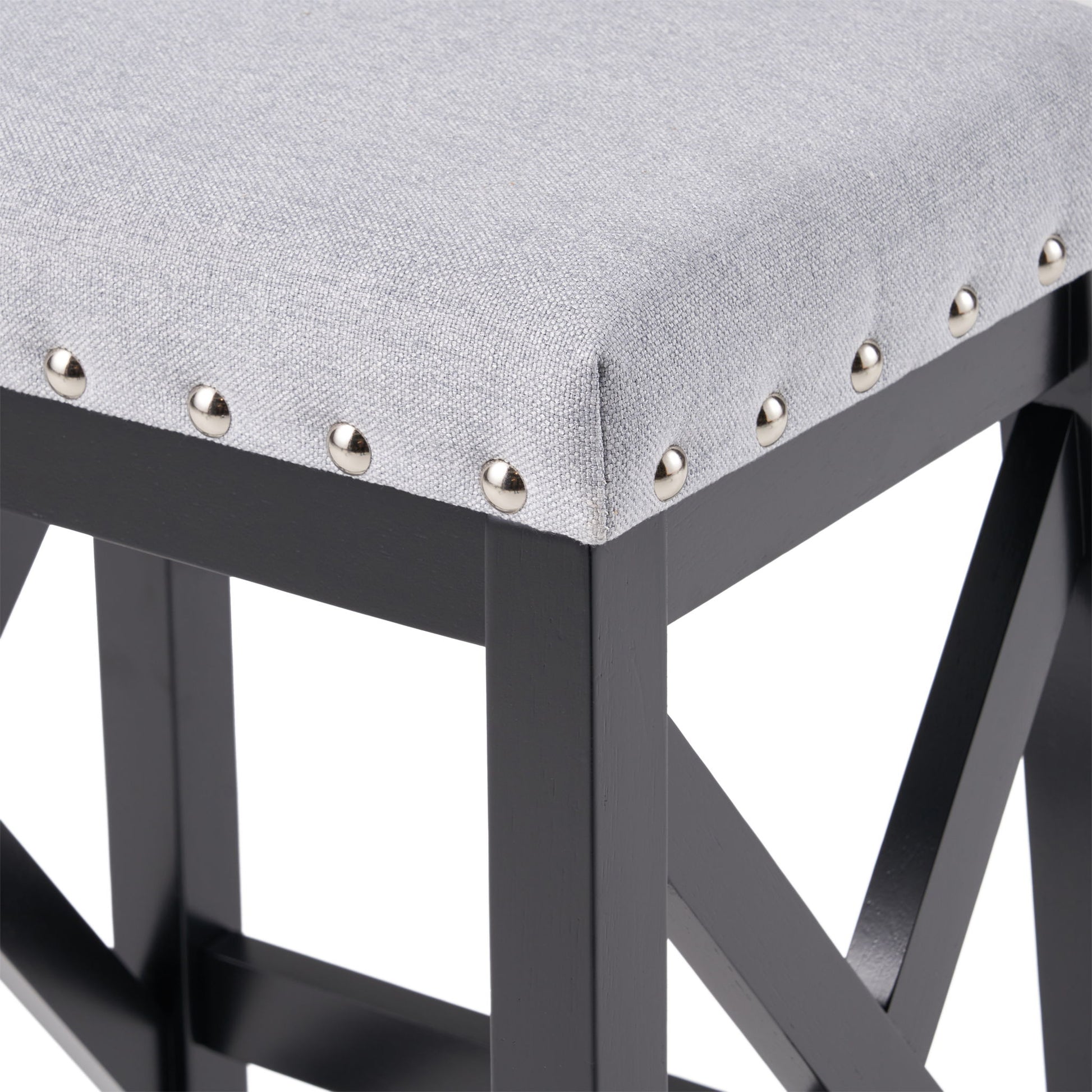 Greely Saddle Barstool Set With Fabric Upholstery - Light Gray