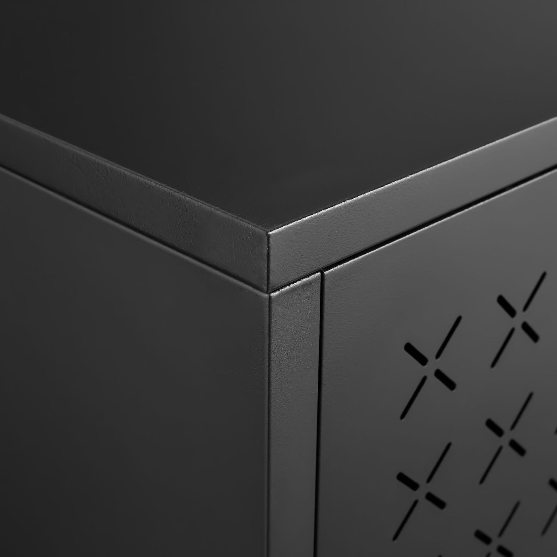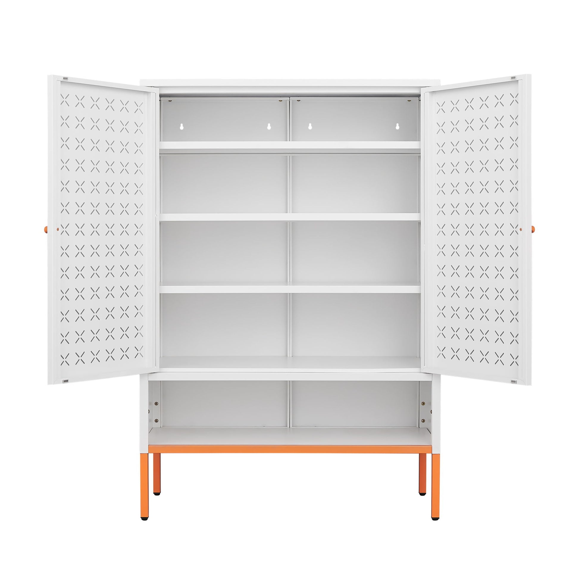 Grid Double Door Shoe Cabinet With Adjustable Compartments And Moisture-Proof Design In White Metal
