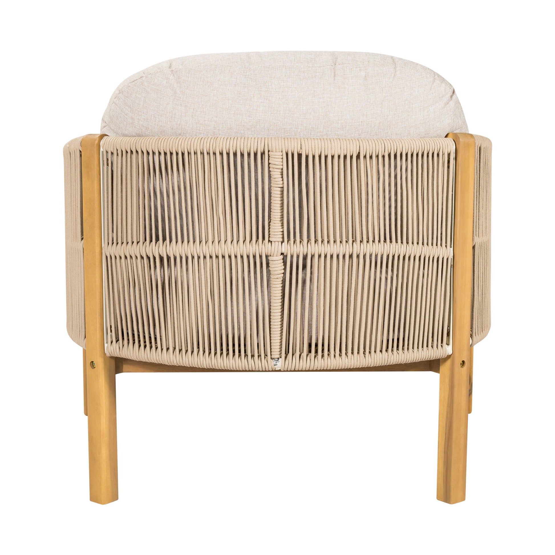 Grotta - Outdoor Wood Club Chair Set Rope With Cushion Frame - Teak / Beige
