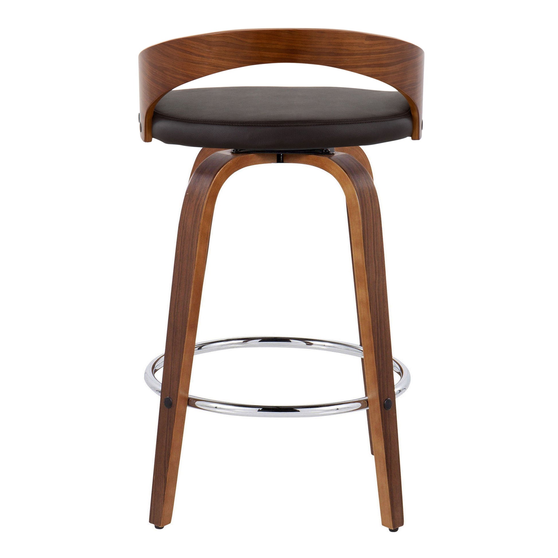 Grotto - Mid-Century Modern Fixed Height Counter Stool With Swivel With Round Footrest (Set of 2) - Walnut / Brown
