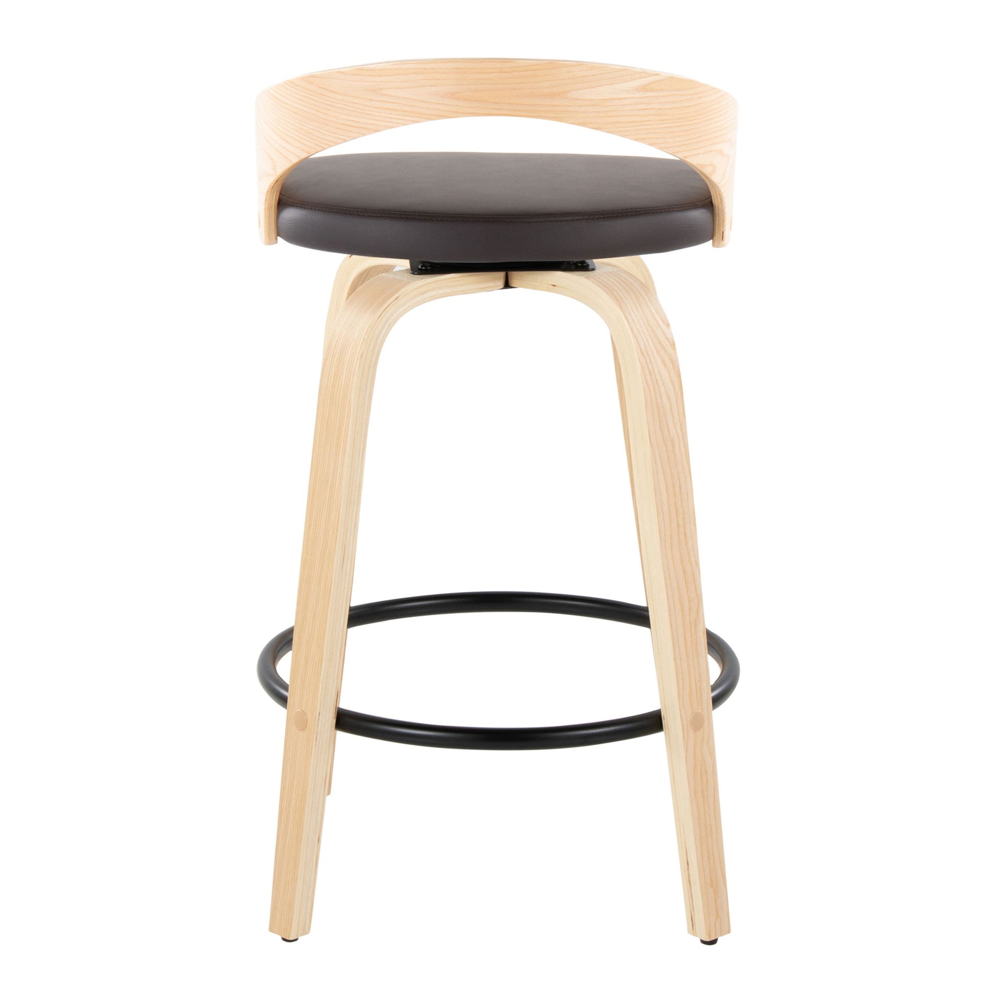 Grotto - Mid-Century Modern Fixed Height Counter Stool With Swivel With Round Footrest (Set of 2) - Natural / Brown