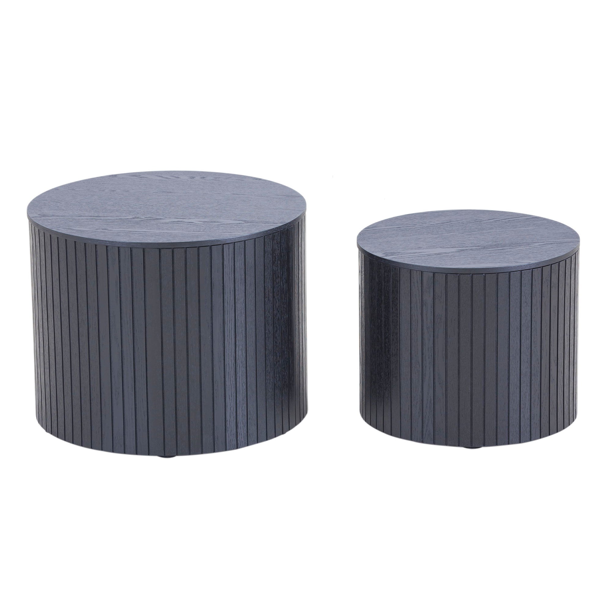 Modern Nesting Coffee Table Set With Walnut Veneer - 2 Pieces For Living Room - Black