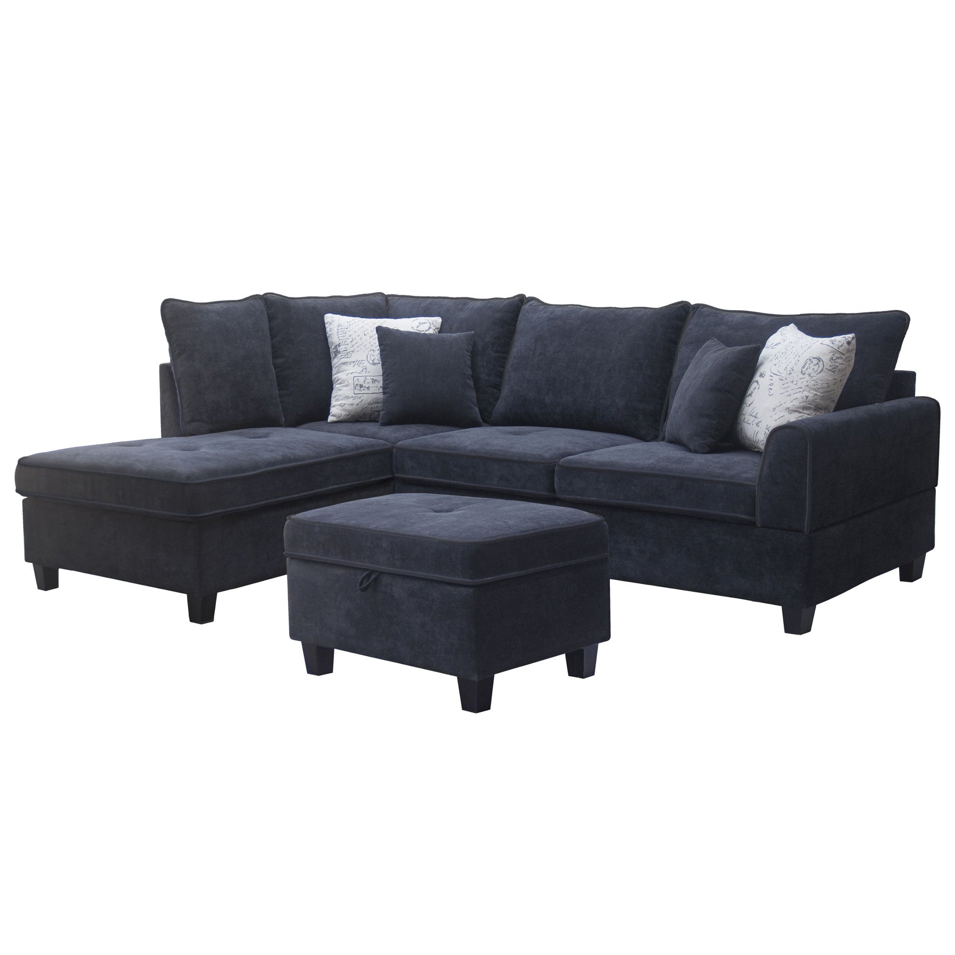 Harmony 99.5"W Black Fabric Sectional Sofa with Left-Facing Chaise and Storage Ottoman