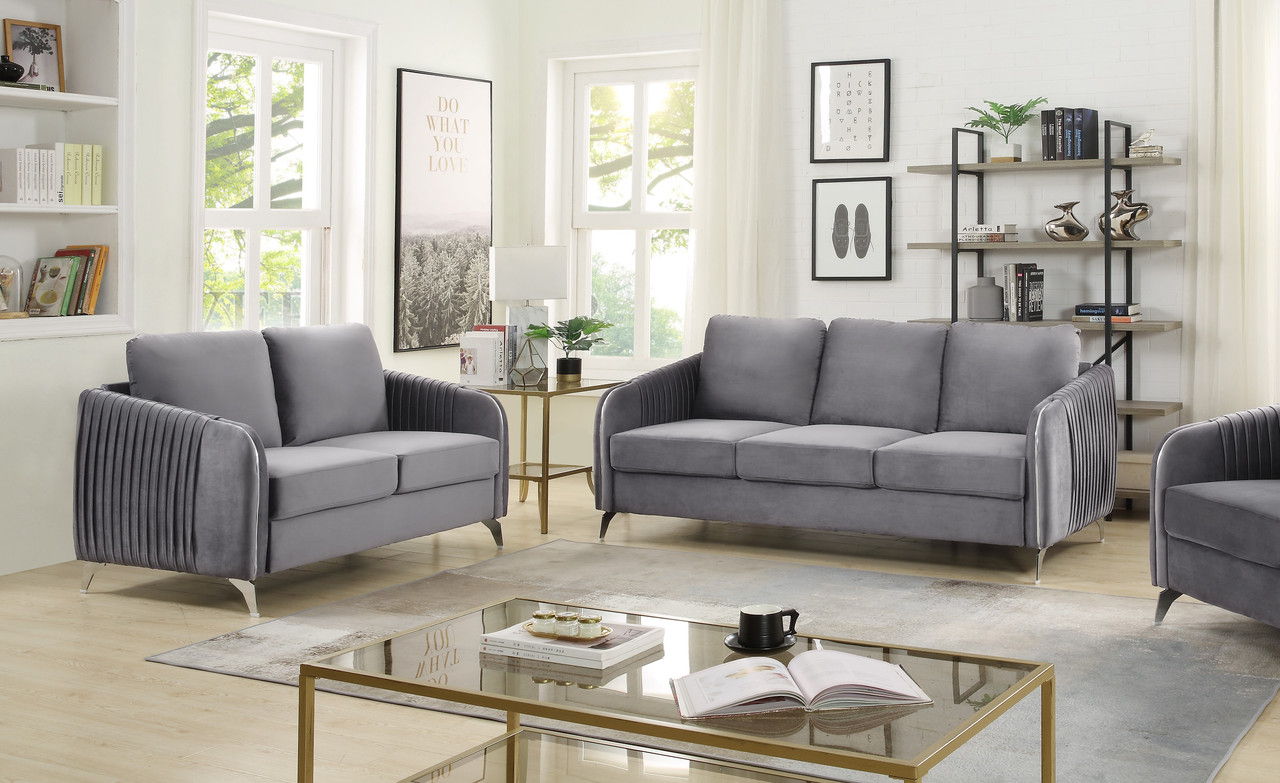 Hathaway Gray Velvet Fabric Sofa Loveseat Living Room Set