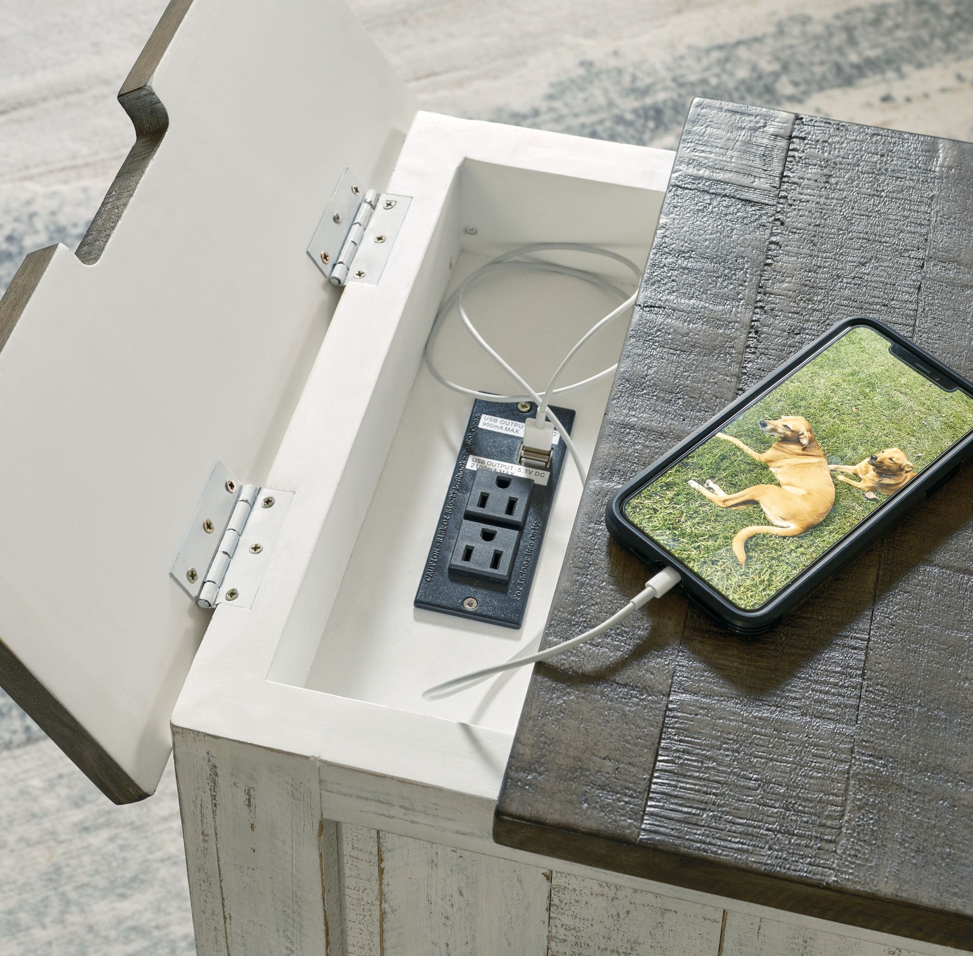 - 110V power supply with dual USB charging port