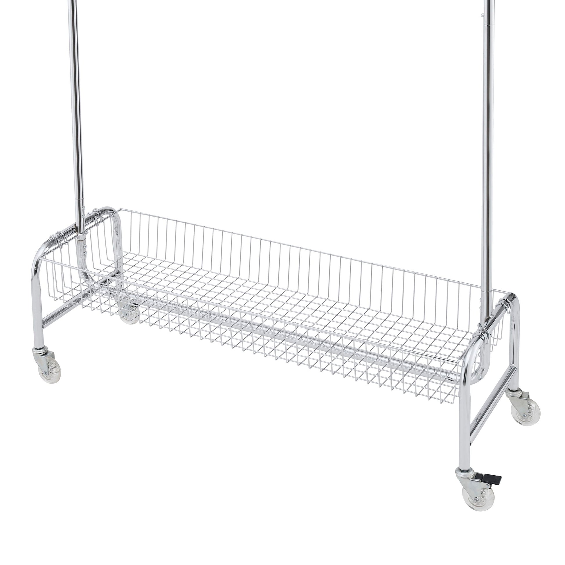 Heavy Duty Iron Garment Rack With Basket On Wheels - Silver