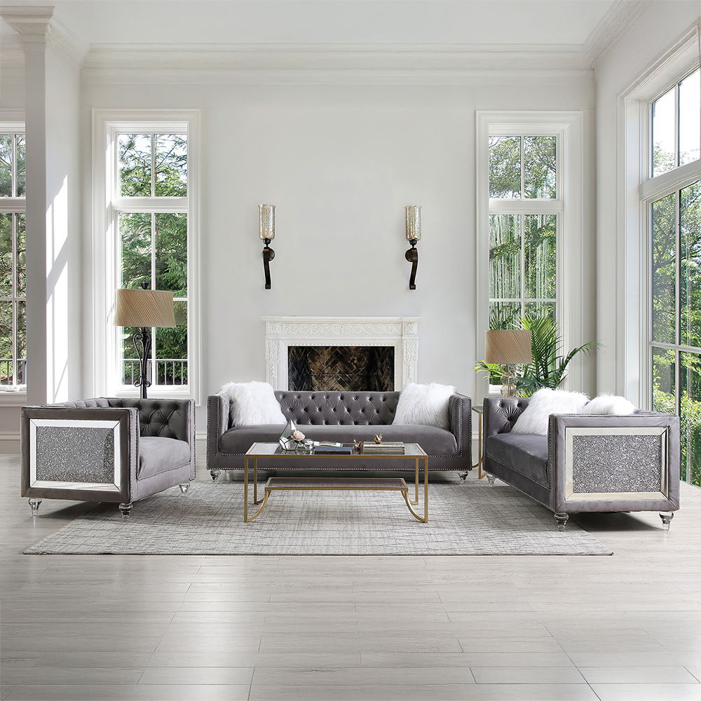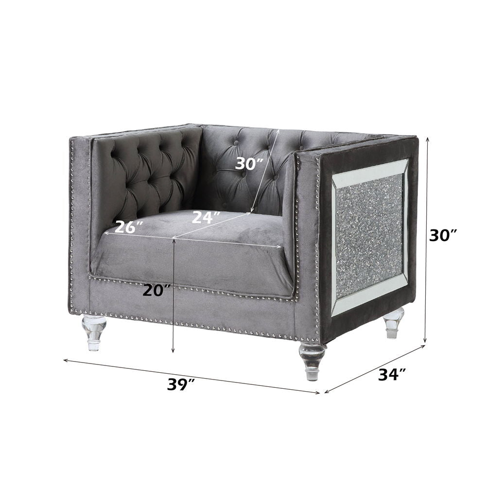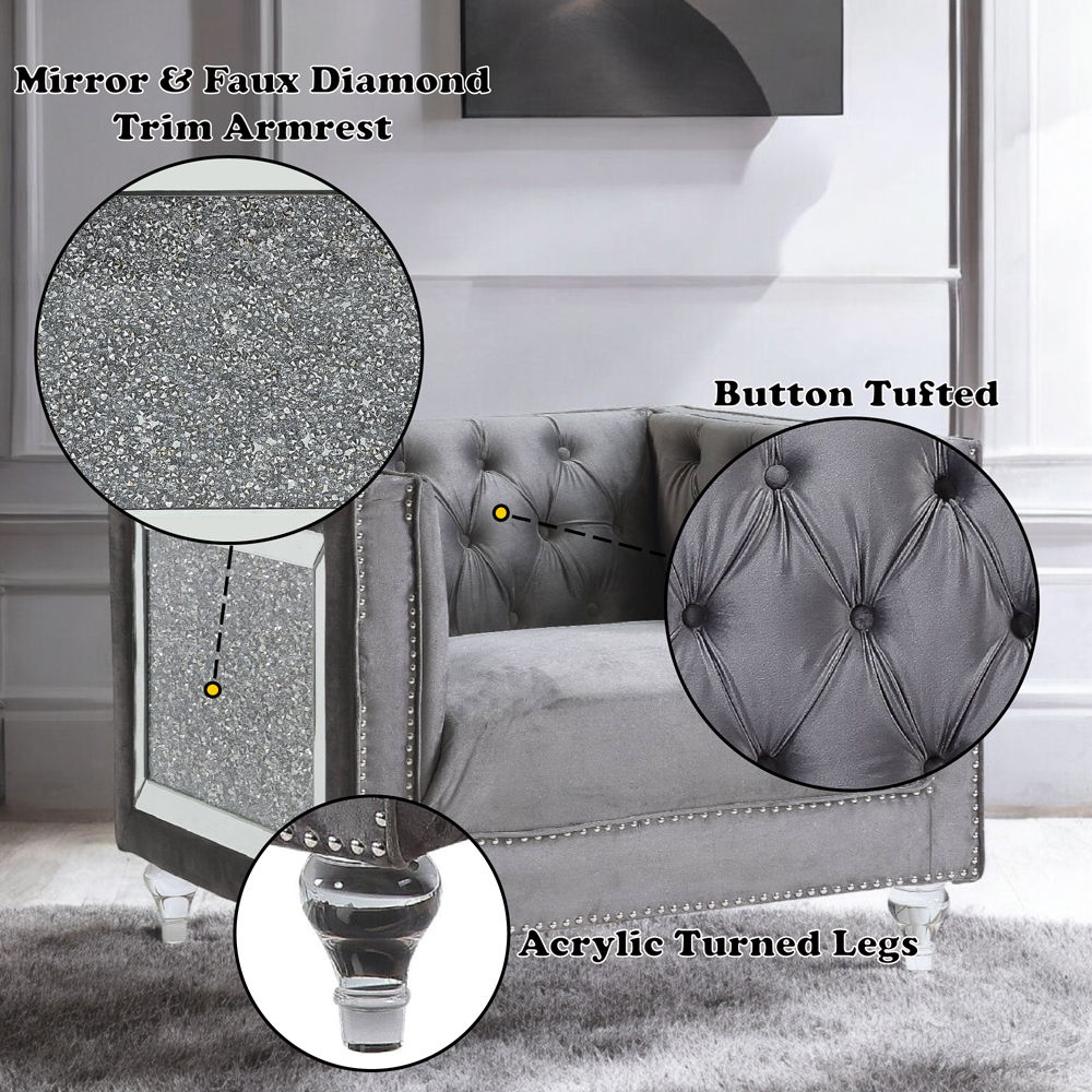 Heibero II - Chair - Gray Velvet & Faux Diamond Trim