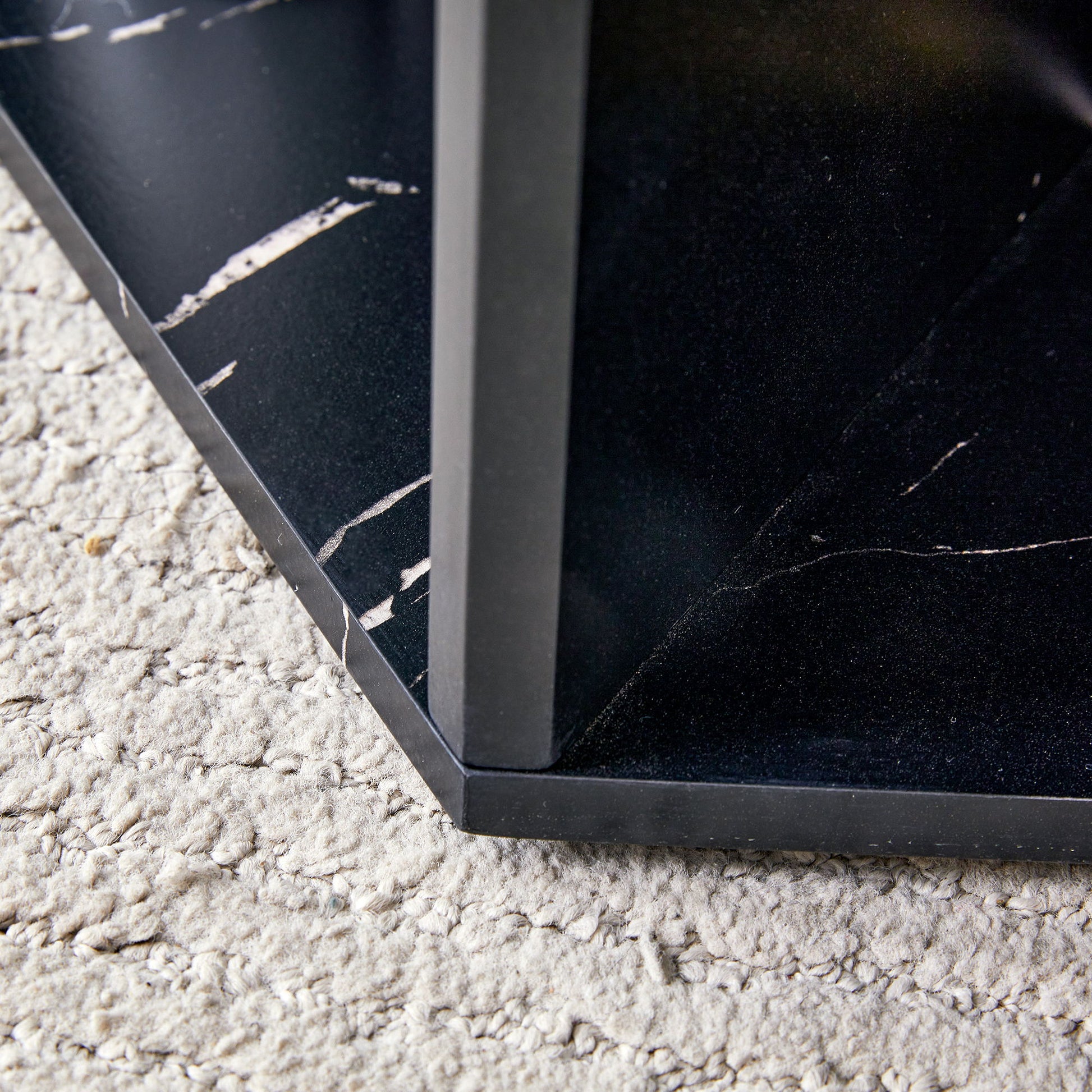 Hexagonal Coffee Table With Characteristic Pattern Stickers And Multi Hole Design For Extra Storage - Black