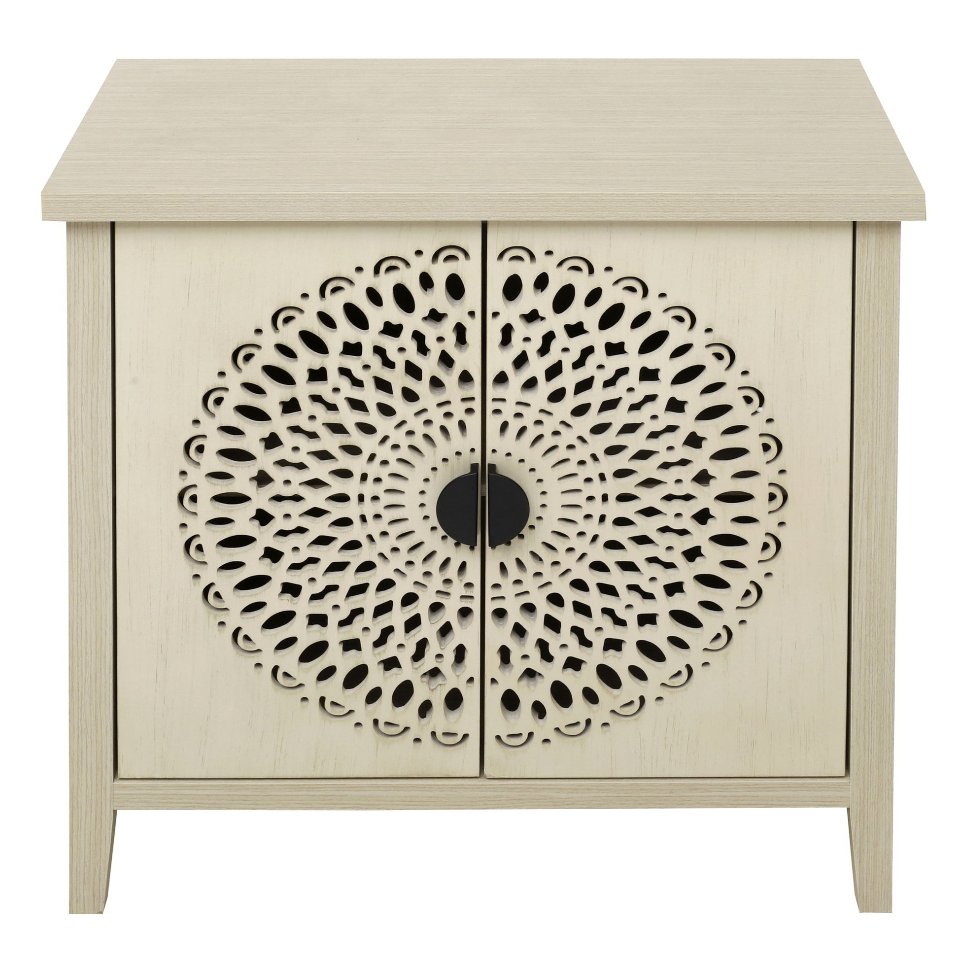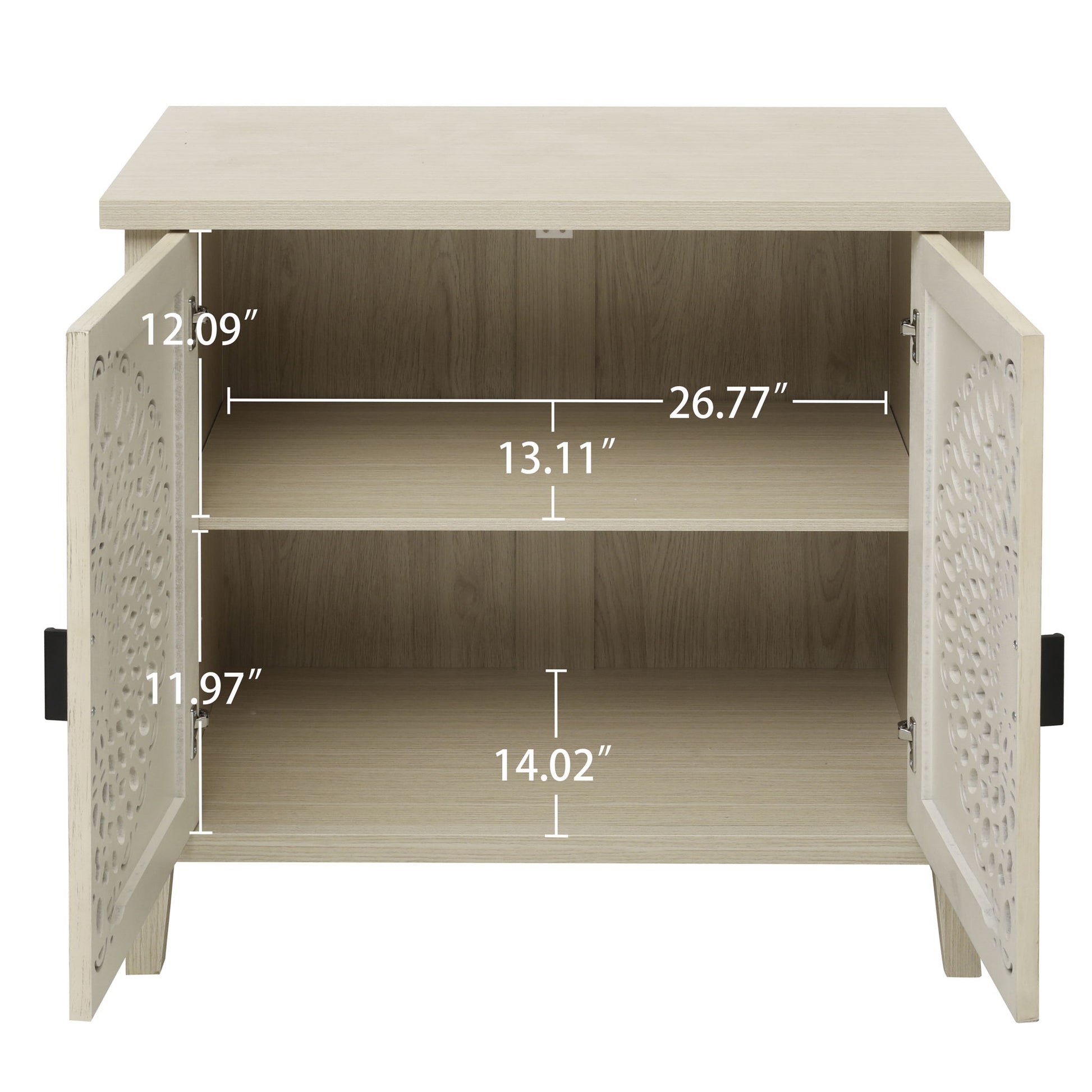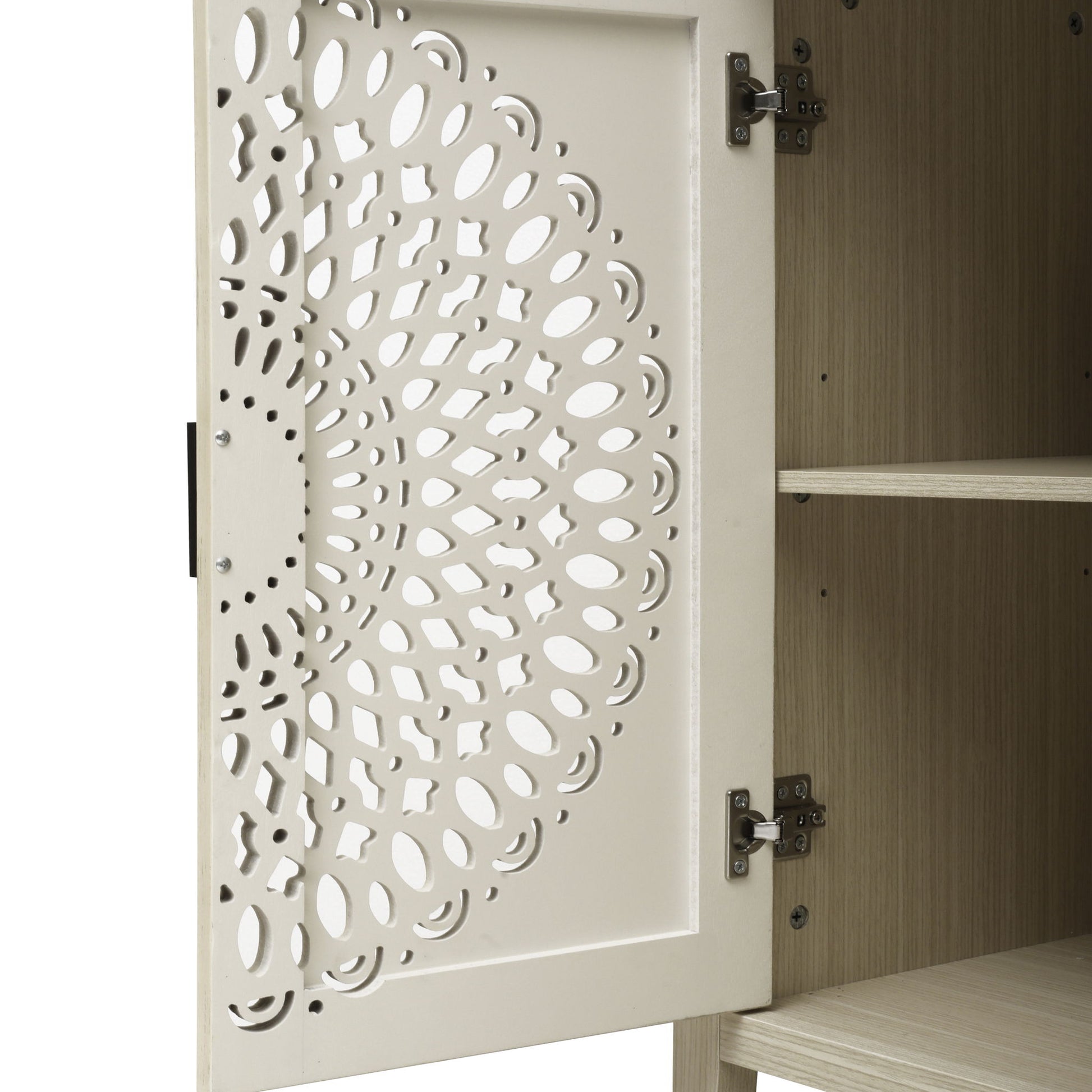 Hollow Carved 2 Door Accent Cabinet Sideboard Buffet Storage Cabinet With Adjustable Shelf For Entryway Living Room Bedroom - Natural