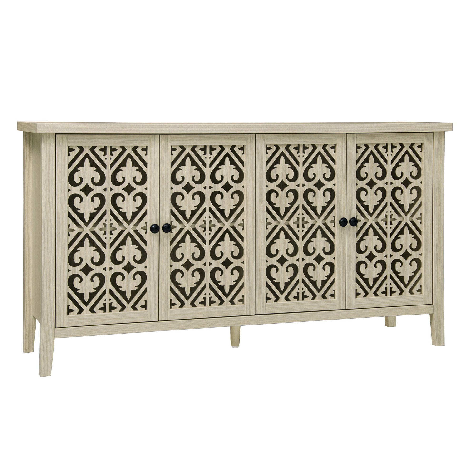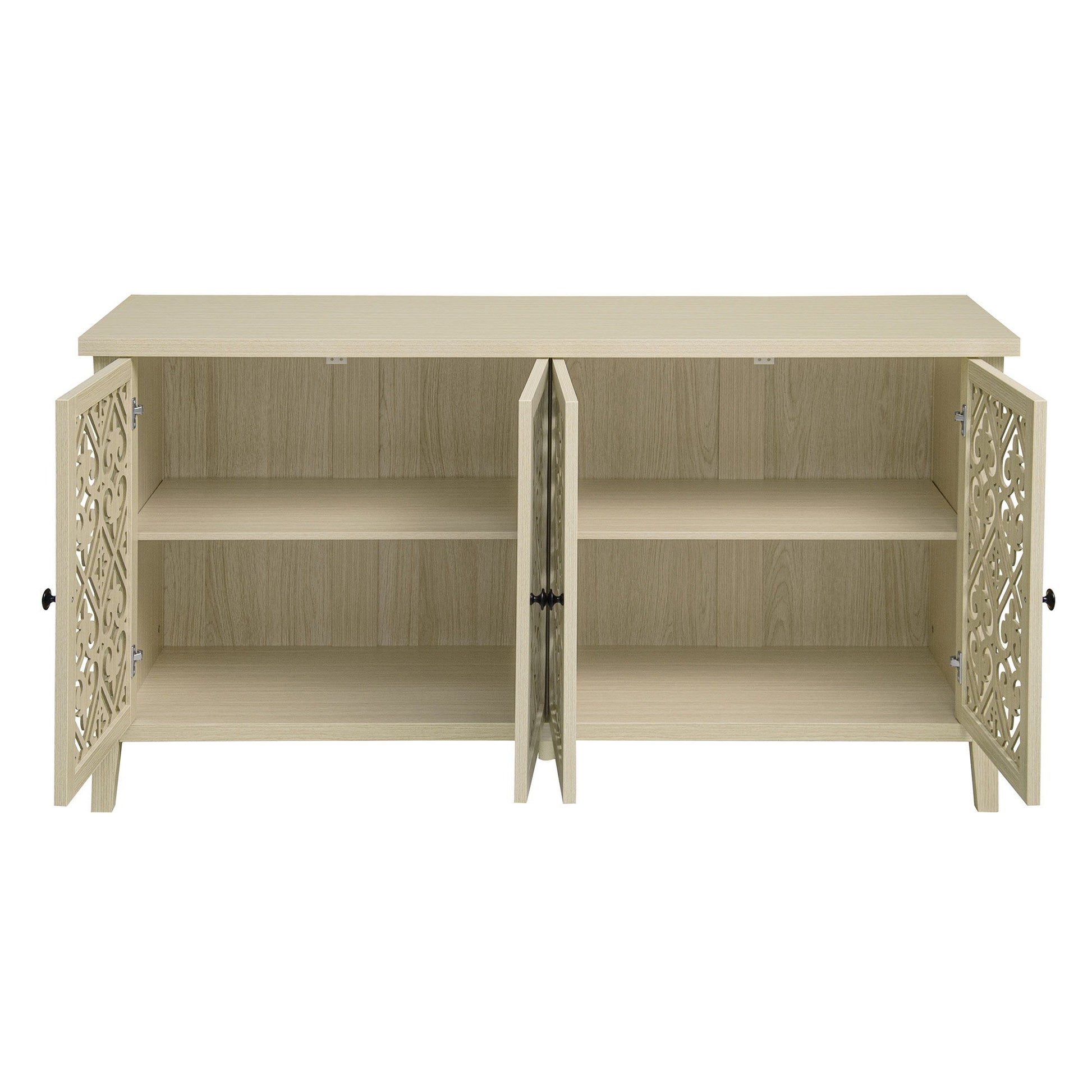 Hollowed Out Cabinet With 4 Doors, American Furniture, Suitable For Bedroom, Living Room, Study - Natural