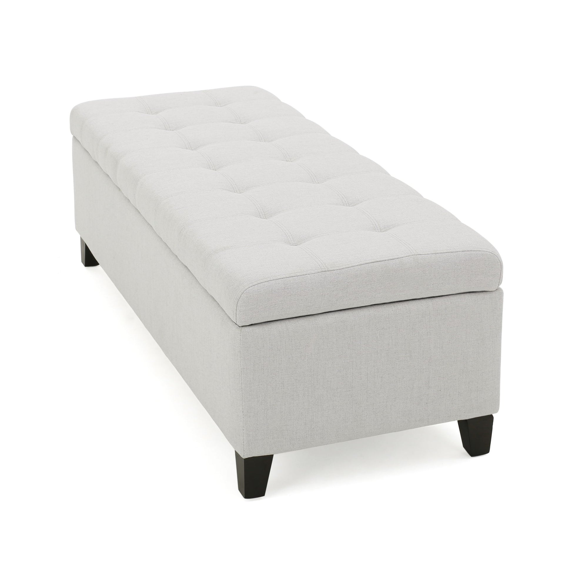 Home Mission - Upholstered Storage Ottoman Bench - Light Gray
