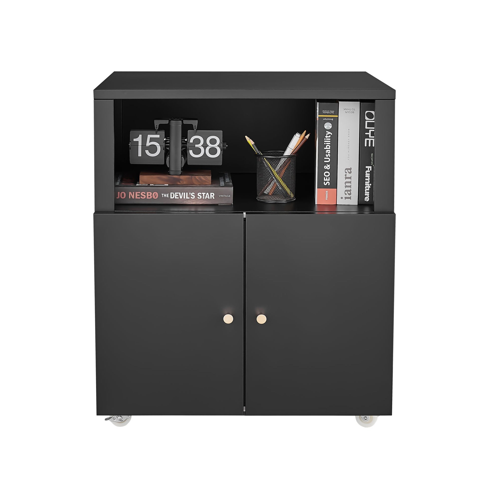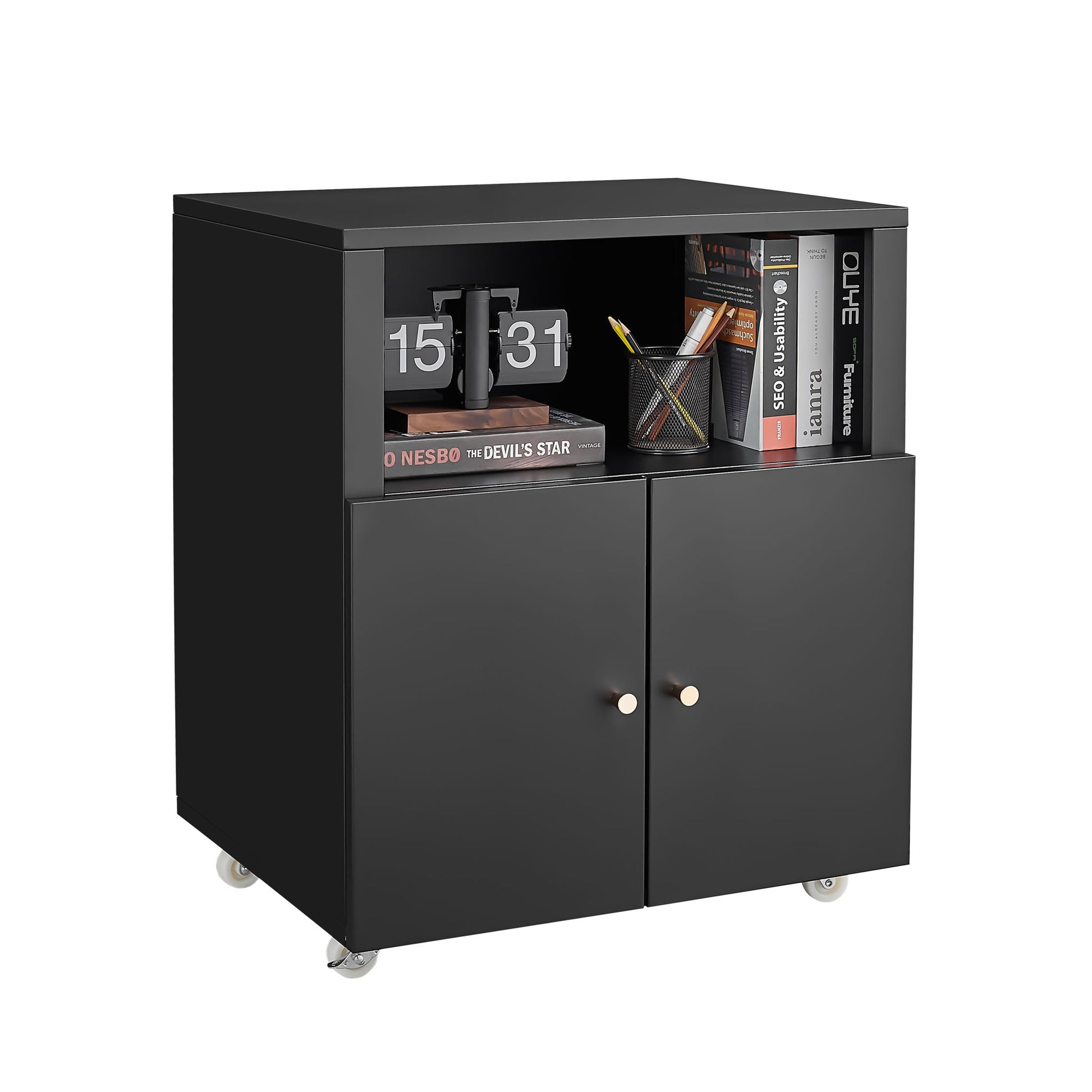 Mobile Printer Stand With Wheels And File Cabinet - Black