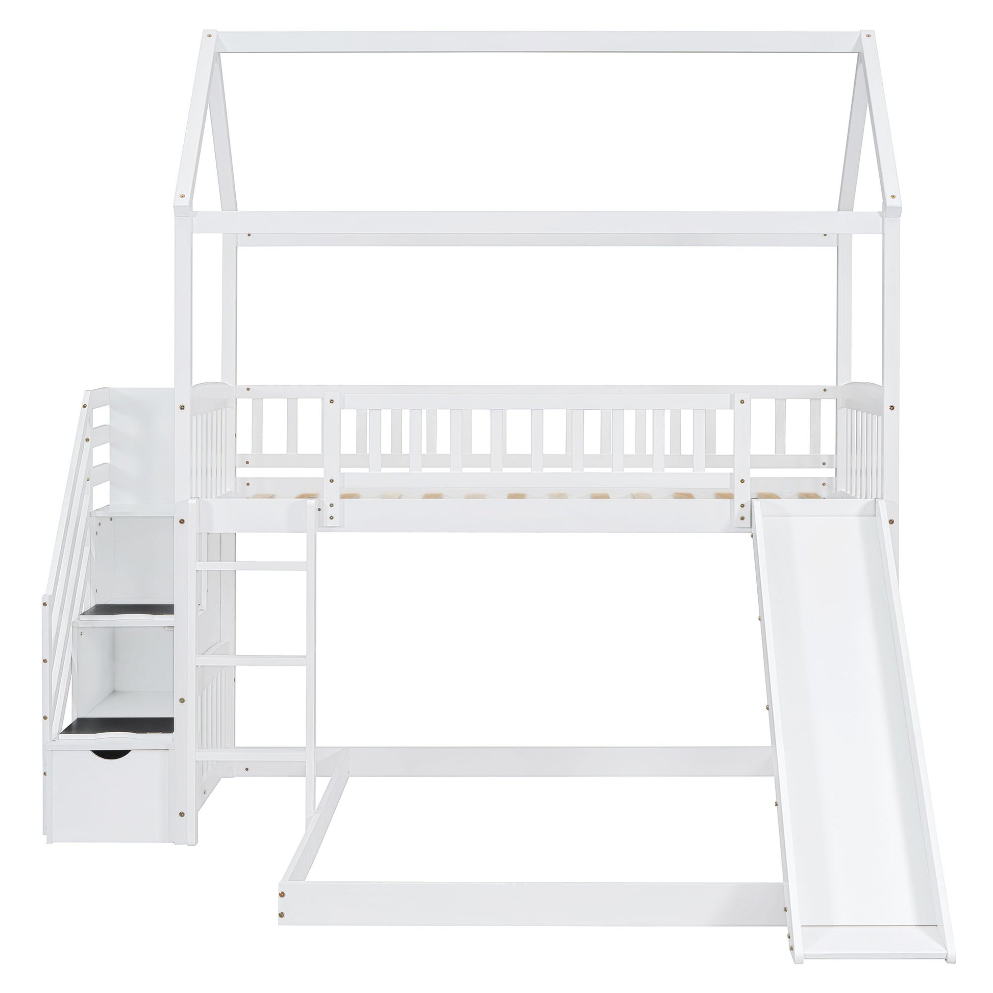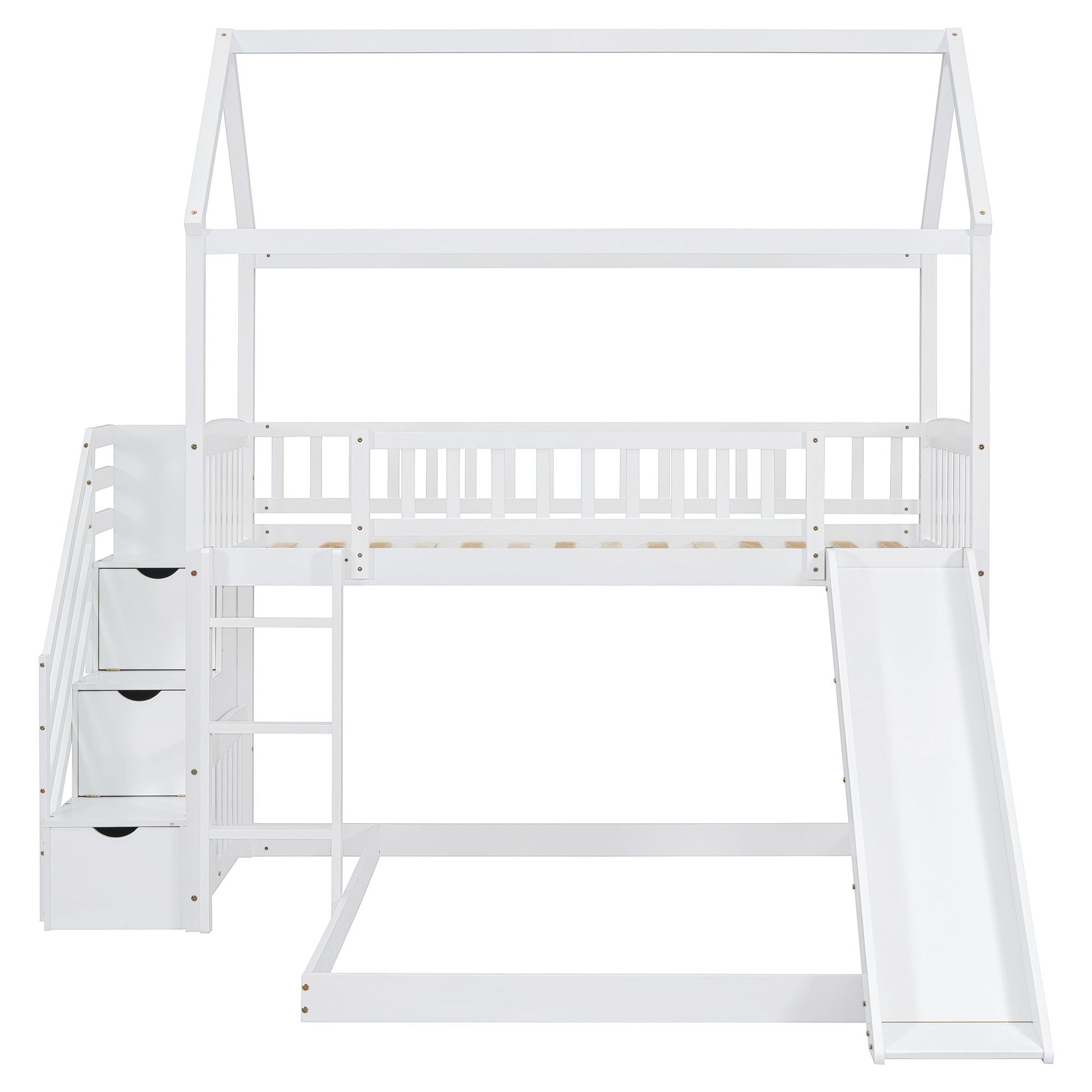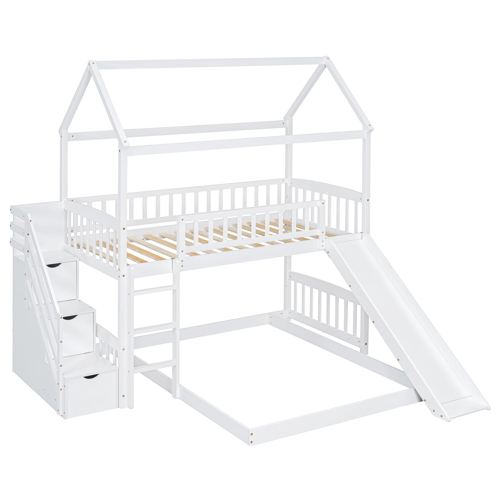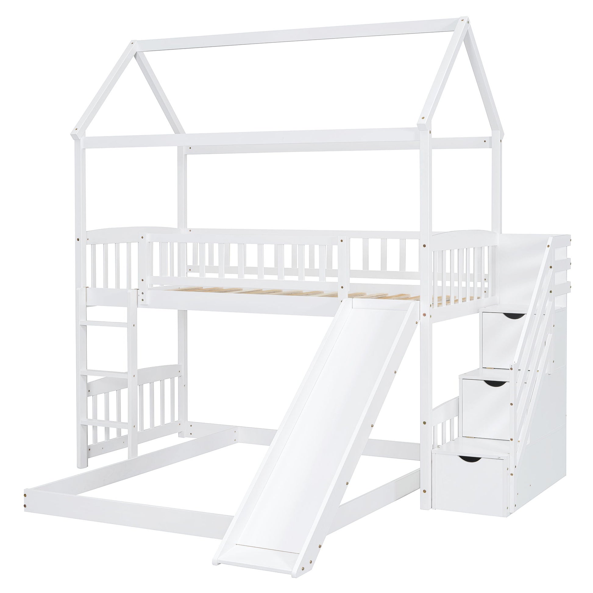 Twin Over Full Bunk Bed With Slide, House Bed With Slide - White