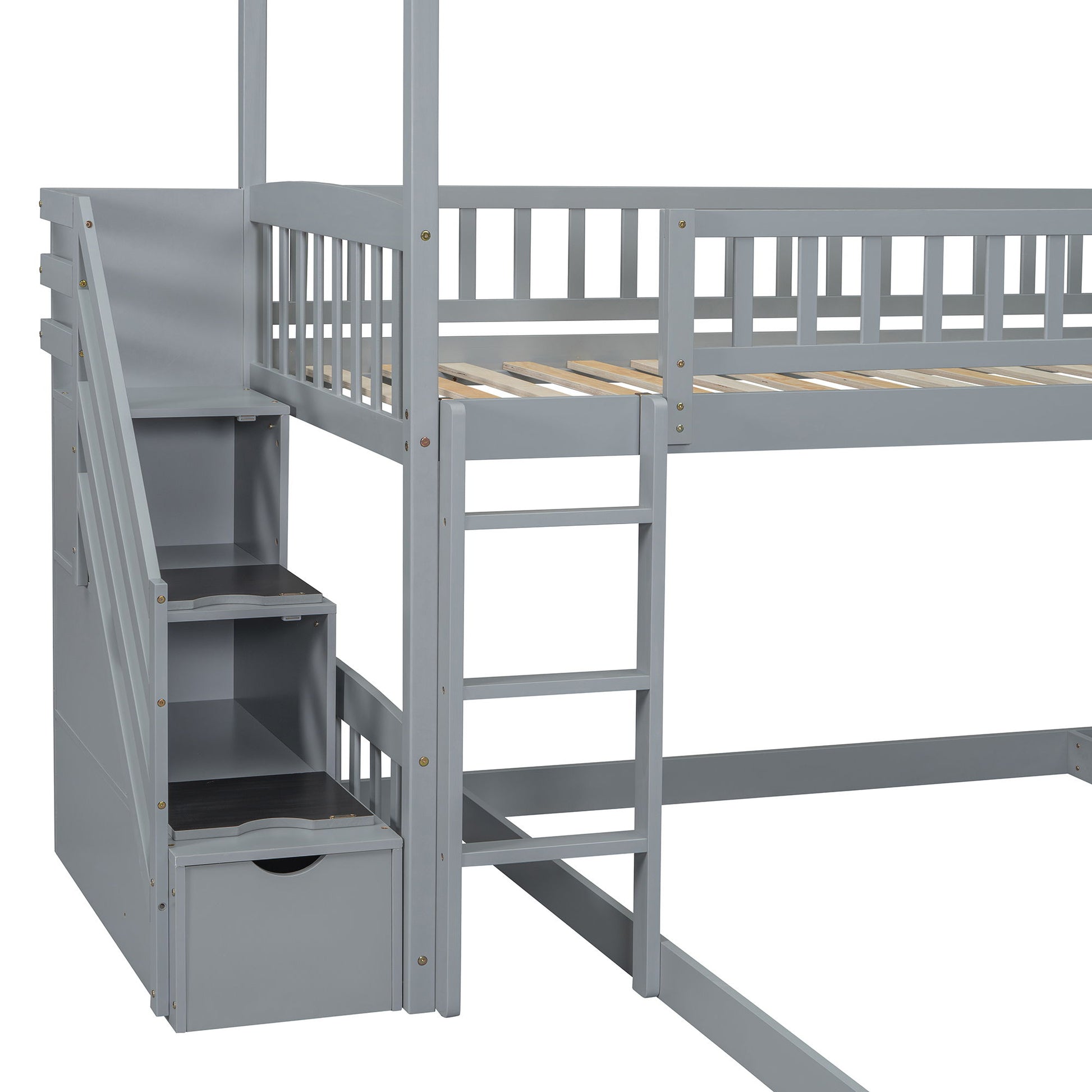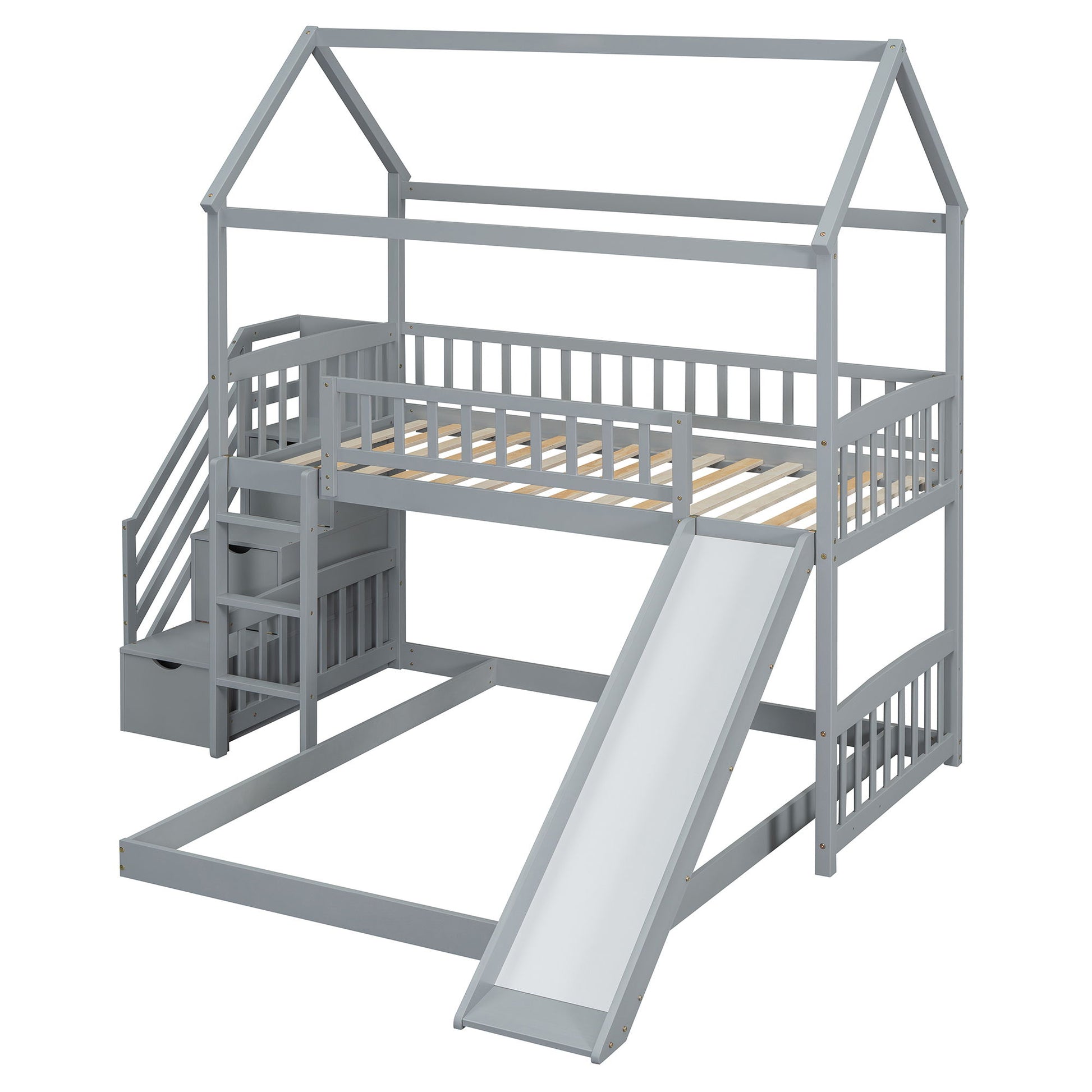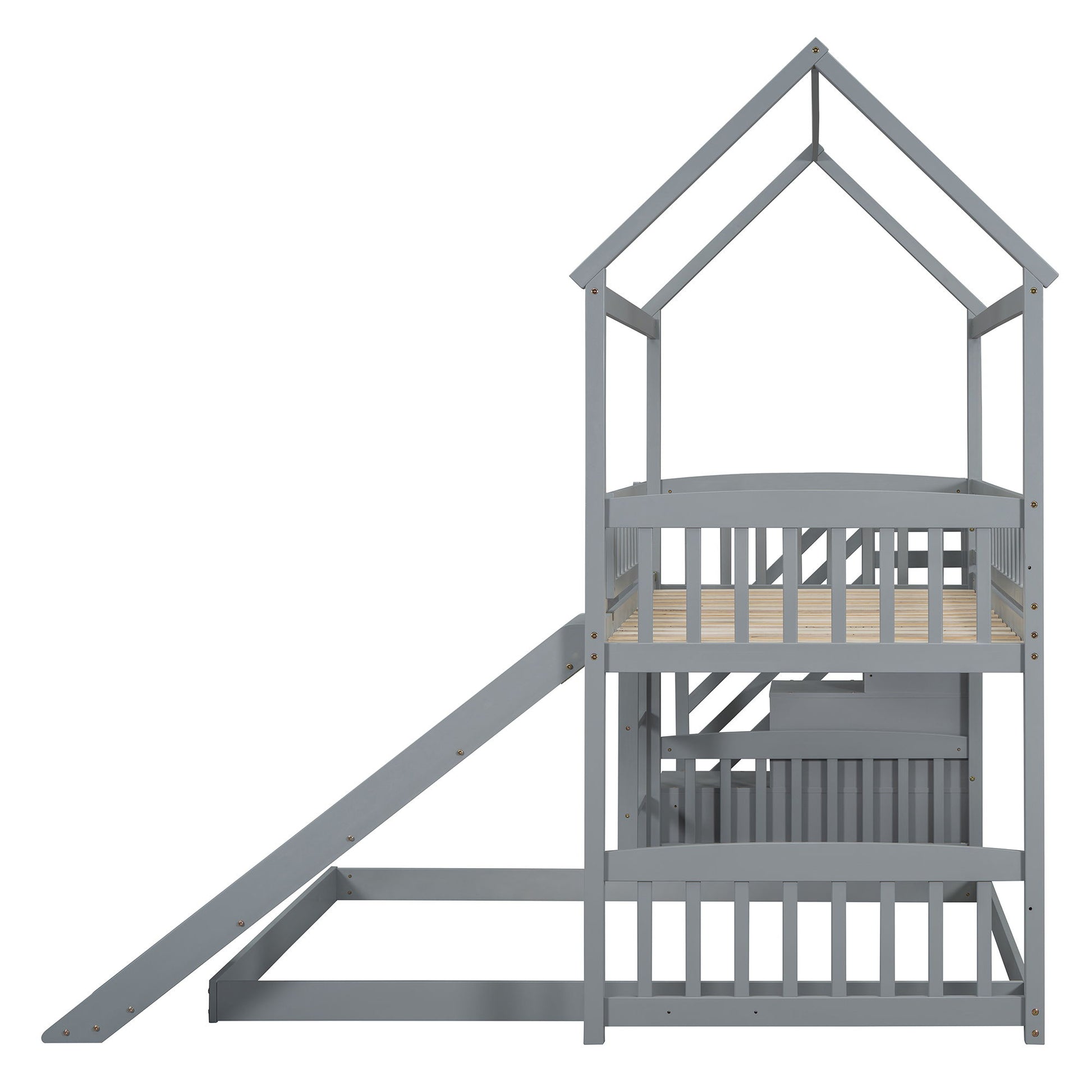 Twin Over Full Bunk Bed With Slide, House Bed With Slide - Gray