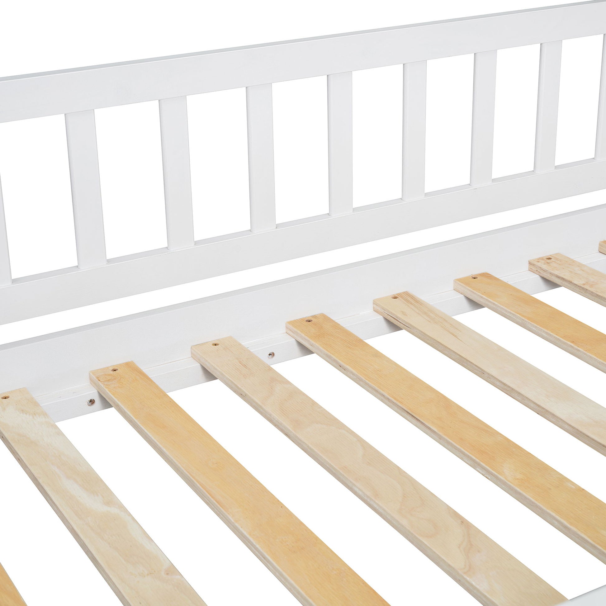 Designed with Safety in Mind: The bed frame is constructed from selected solid pine wood, MDF, and iron alloy bolts, ensuring the bed is sturdy and wobble-free. The upper bunk has high rails to ensure secure, worry-free nights. The reinforced frame supports up to 250lbs on the top bunk and 300lbs on the bottom bunk. The bunk features multiple slats to increase the longevity of your mattress, with no box spring required.