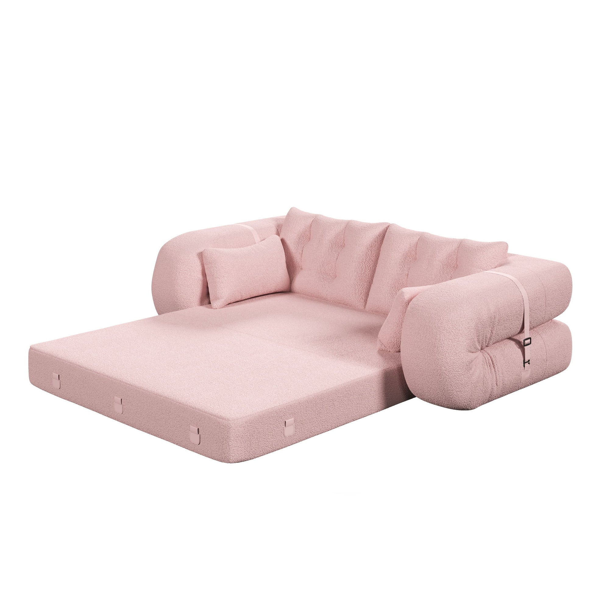 Human Dog Bed, Lazy Sofa Couch, Multifunctional Foldable Sofa Bed, 3 In 1 Teddy Fabric Sleeper Sofa Bed For Living Room Guest Bed, Playroom - Pink