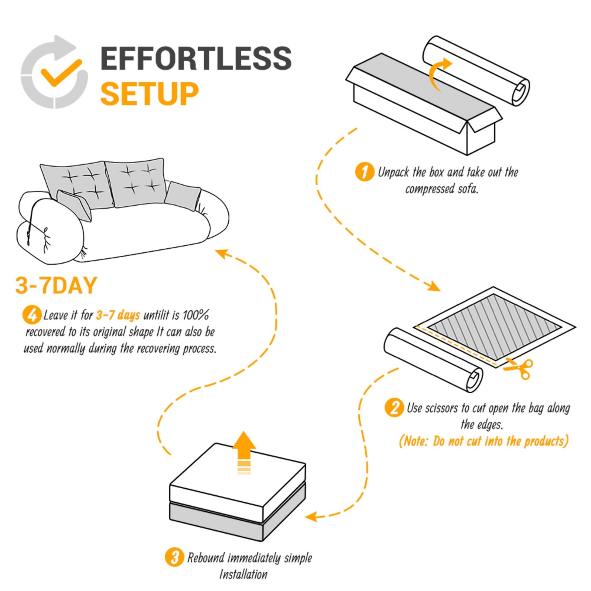 - Easy to assemble: Unpack and cut along the edges. Take out the compression sofa, immediately rebound, and install it easily.