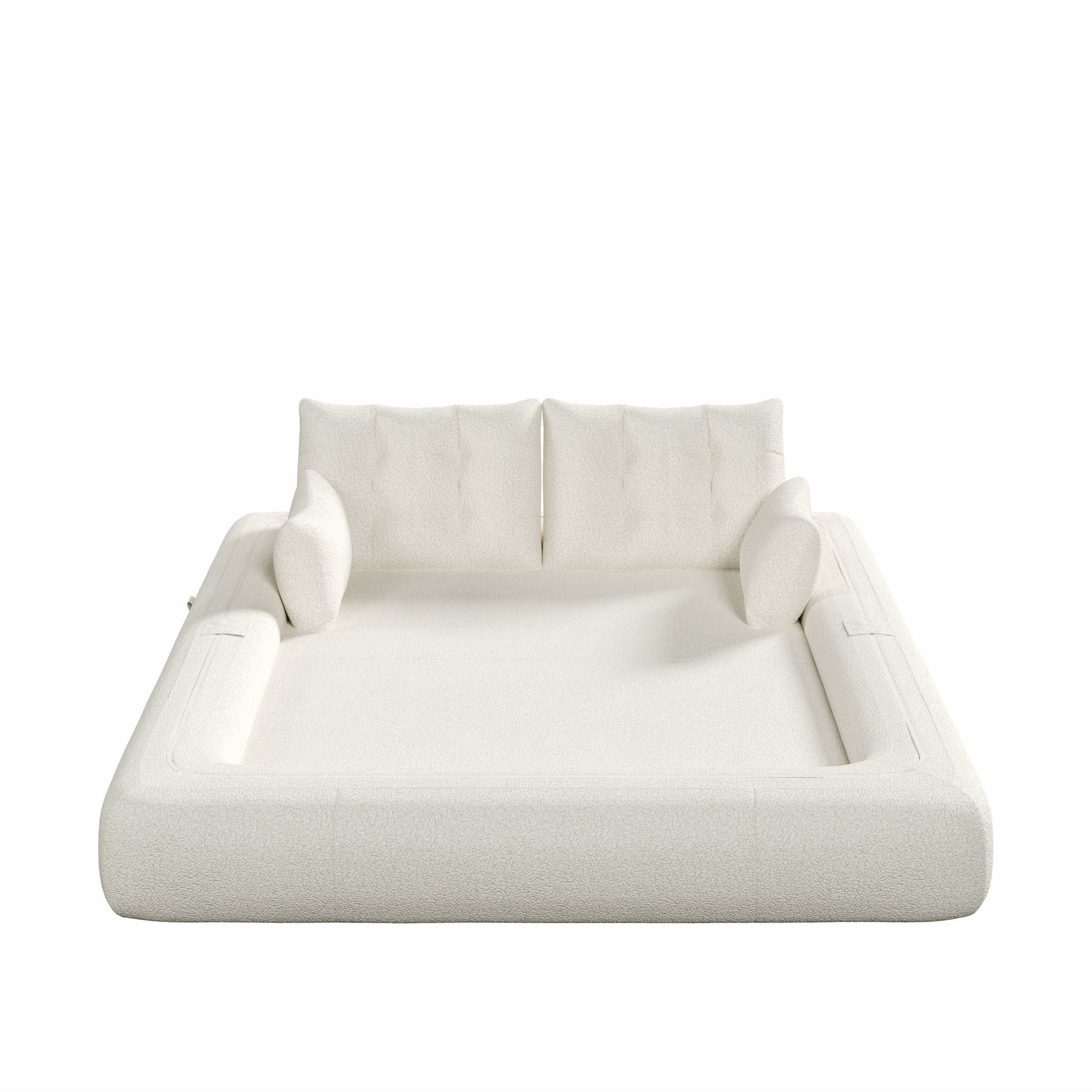 Human Dog Bed, Lazy Sofa Couch, Multifunctional Foldable Sofa Bed, 3 In 1 Teddy Fabric Sleeper Sofa Bed For Living Room Guest Bed, Playroom - Beige