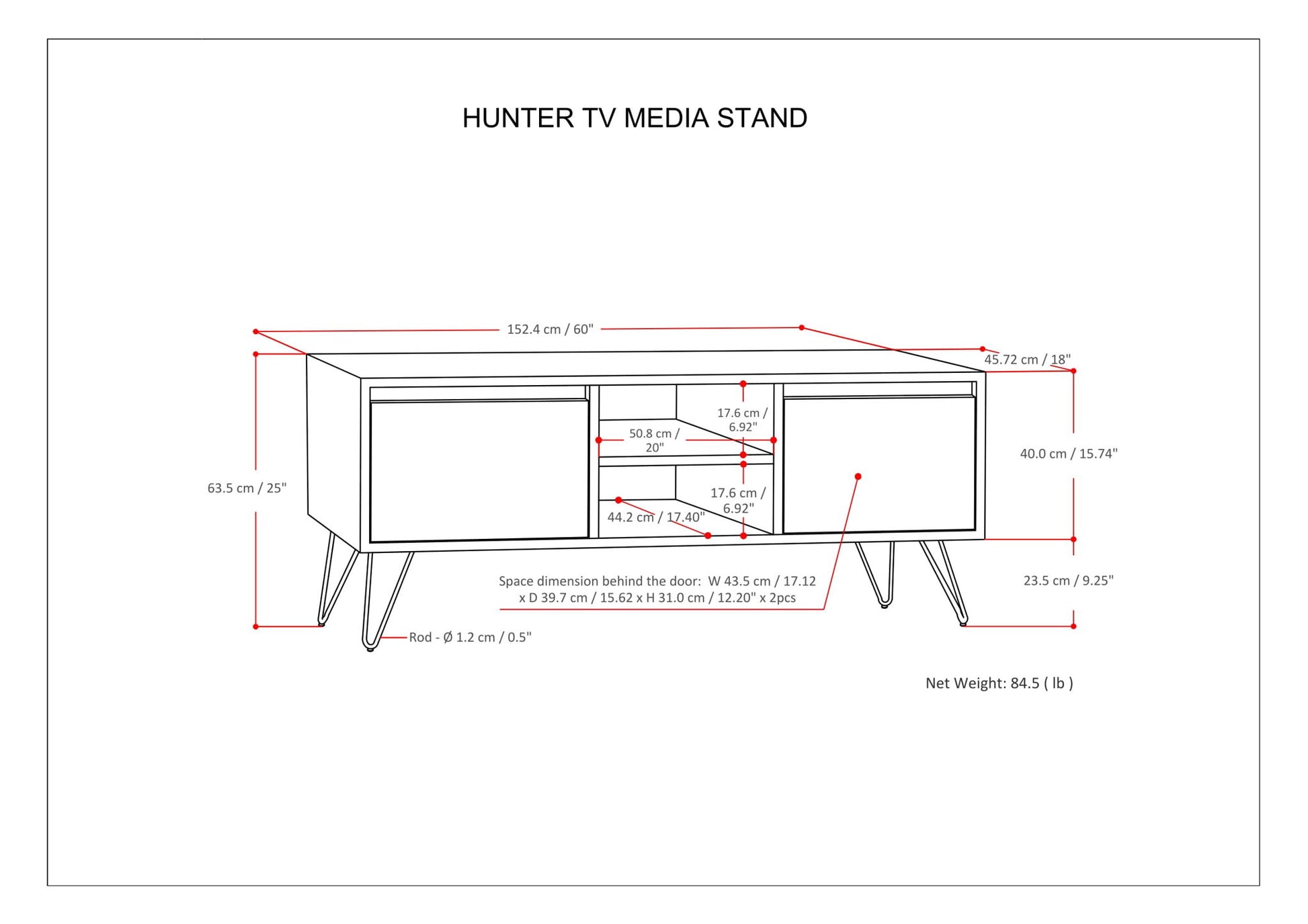 60.0"W x 18.0"D x 25.0"H - 84.7 lb