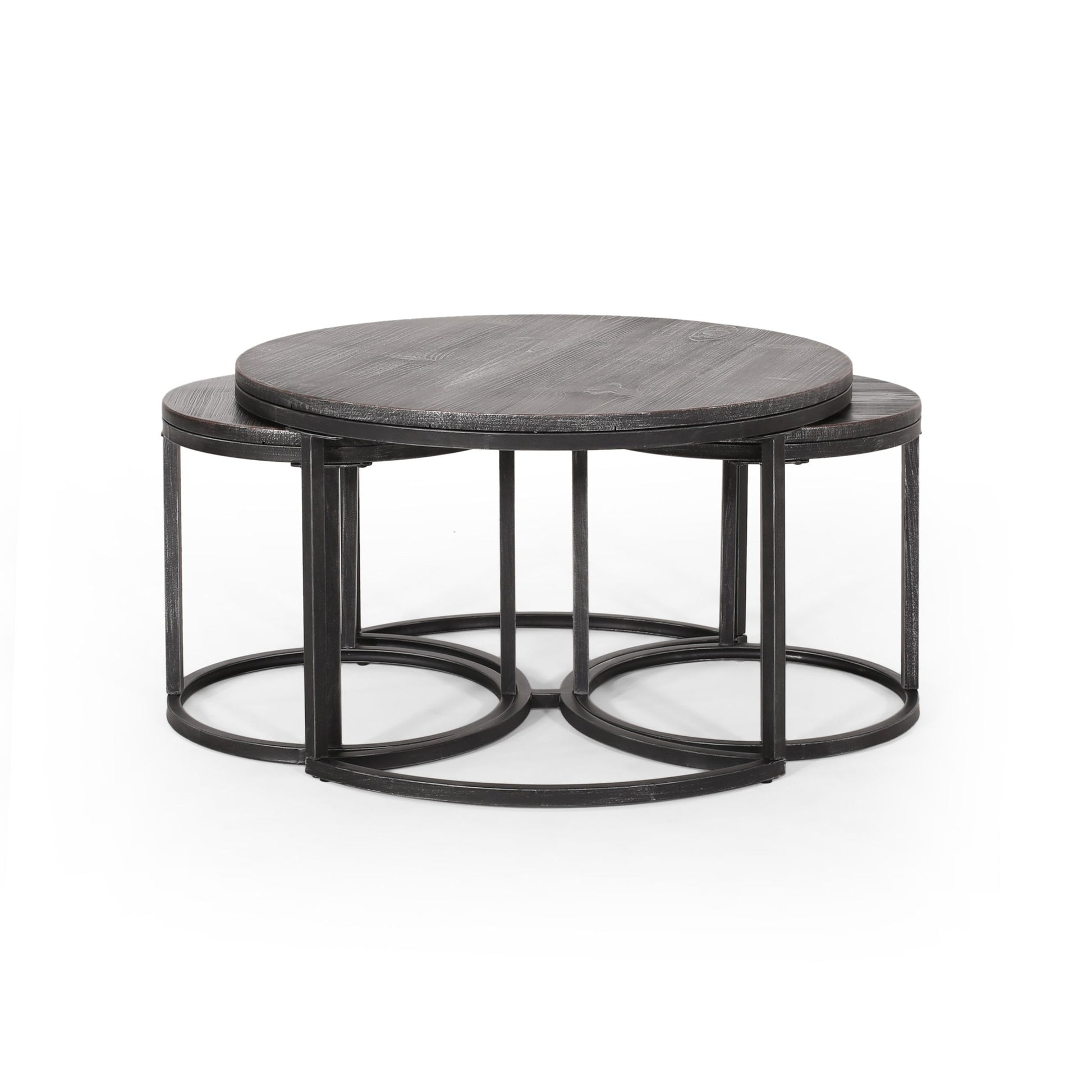 Icebergs - 3 Piece Coffee Table Set With Wood Top And Iron Base - Black / Gray