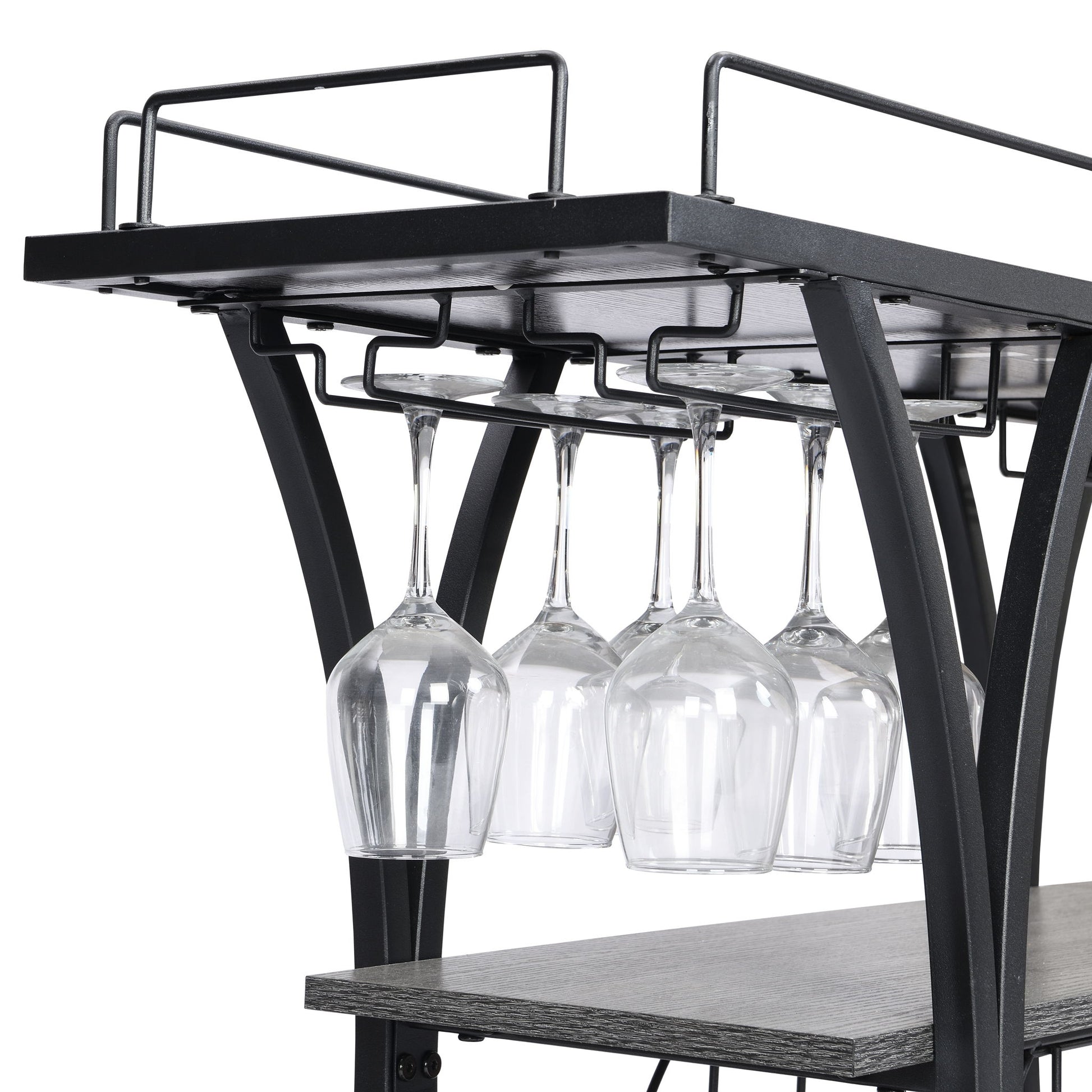 Industrial Bar Cart Kitchen Bar & Serving Cart For Home With Wheels 3 Tier Storage Shelves - Black / Gray