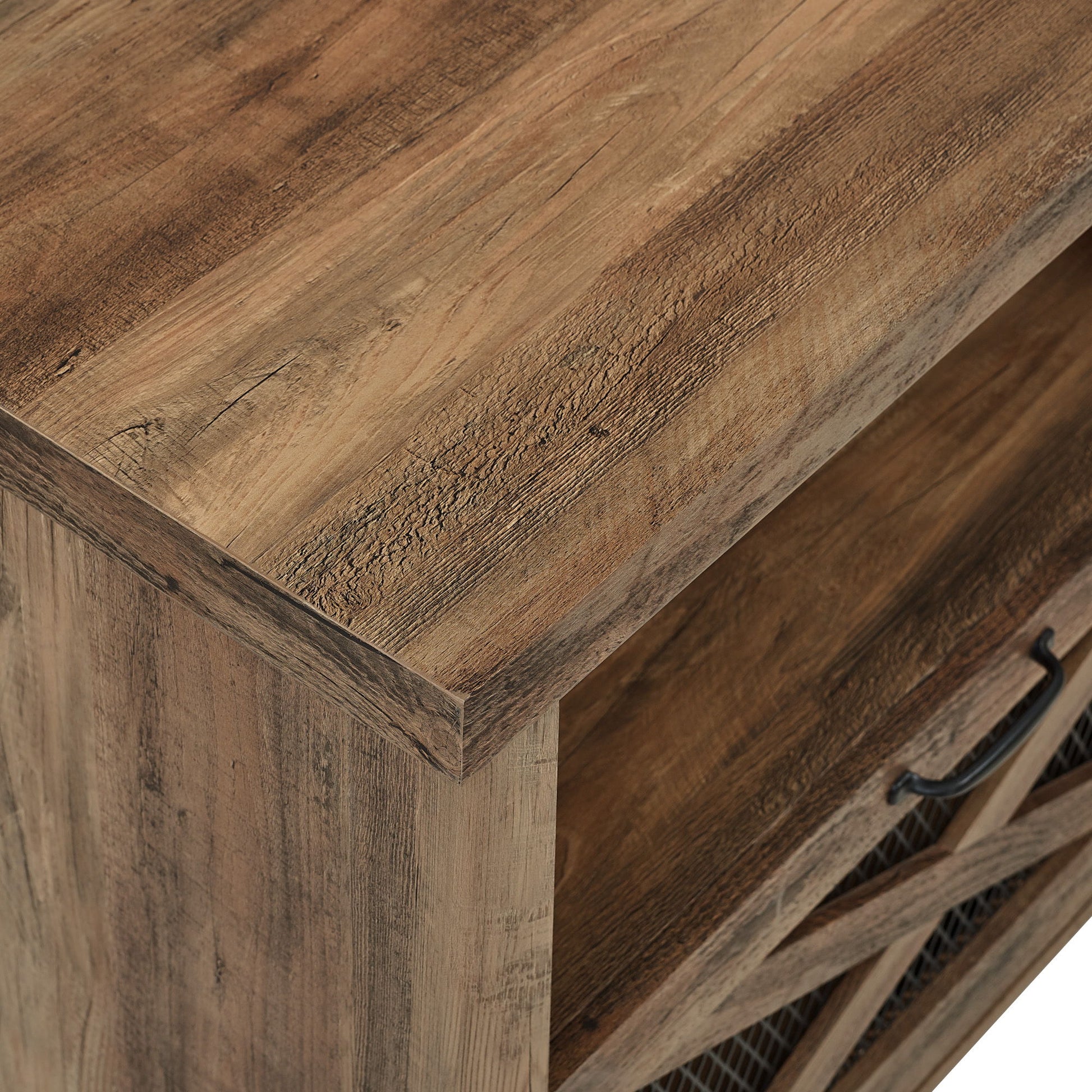 Industrial Farmhouse Metal Mesh Drop Down X Door 70" Fireplace TV Stand For 80" TVs - Rustic Oak