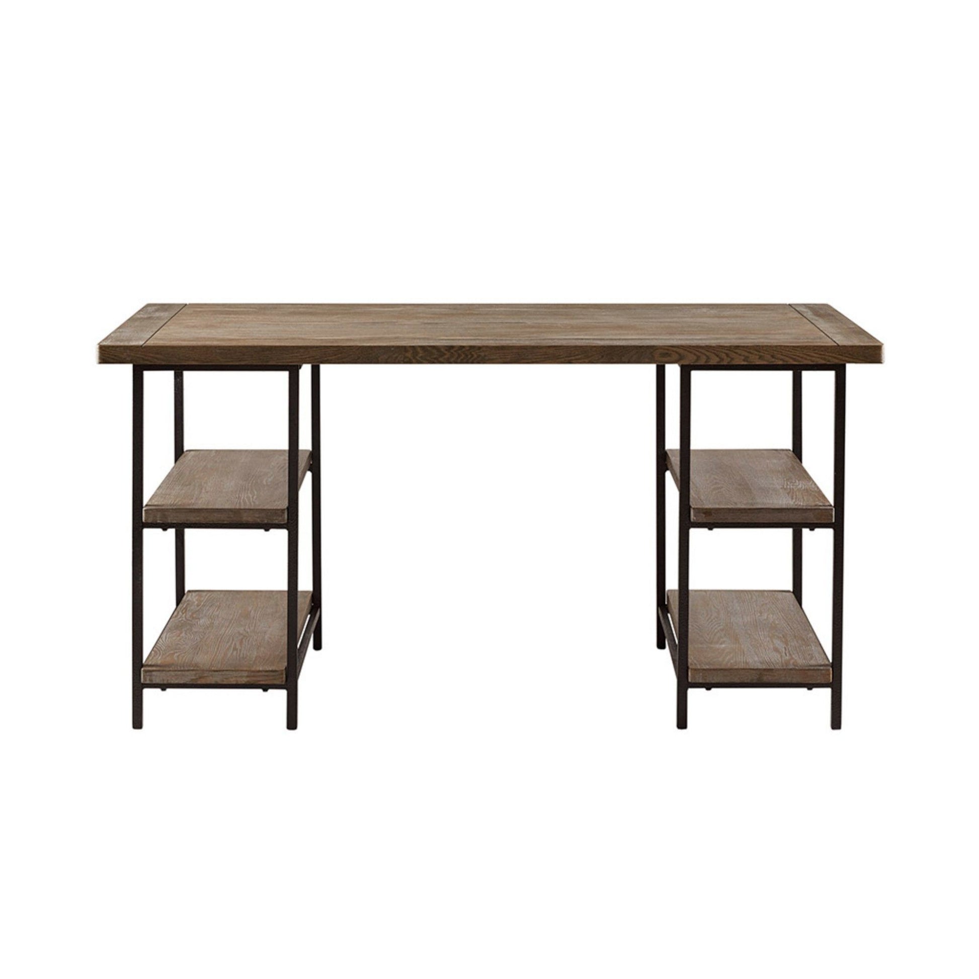 Industrial Style Metal Frame Accent Desk With Side Shelving - Gray