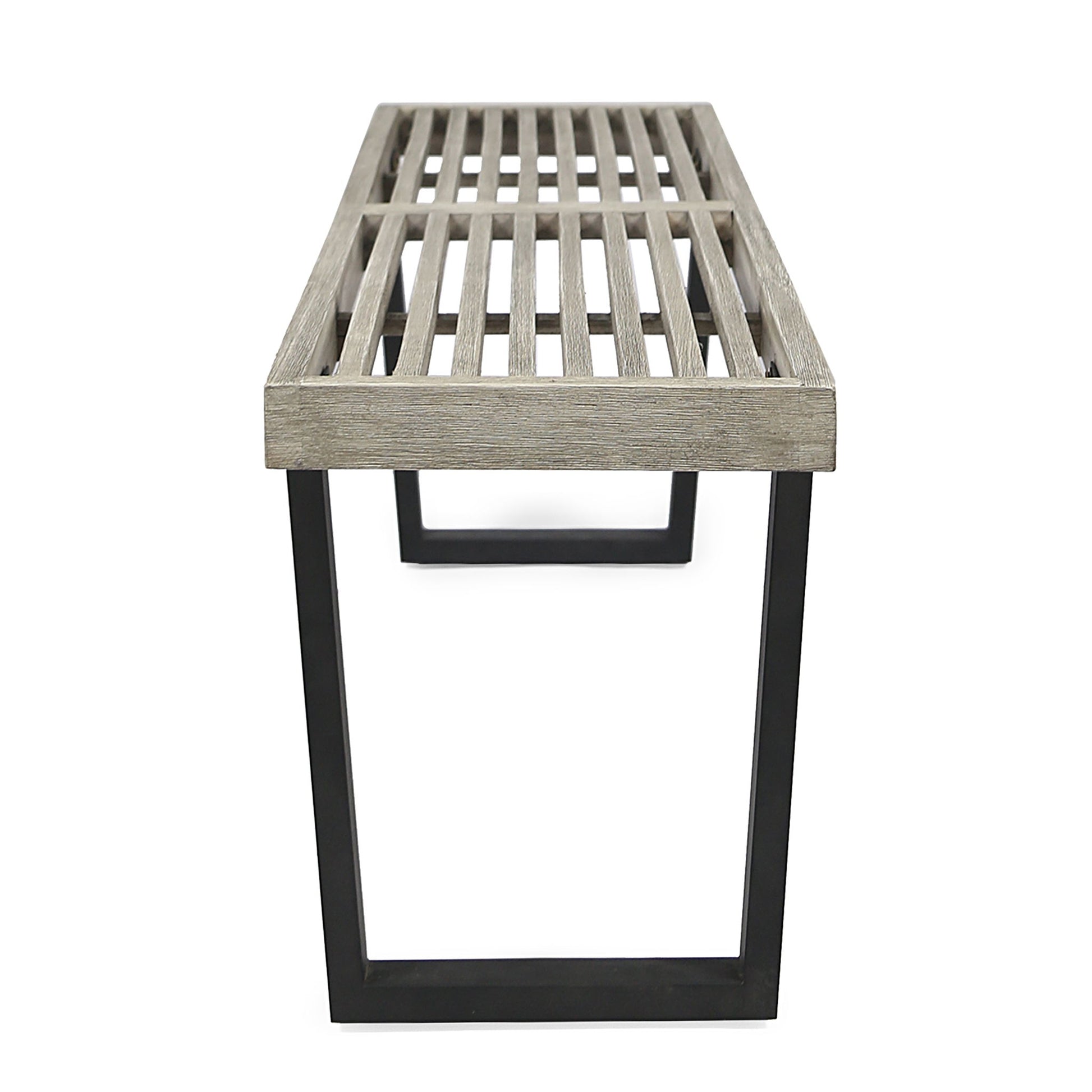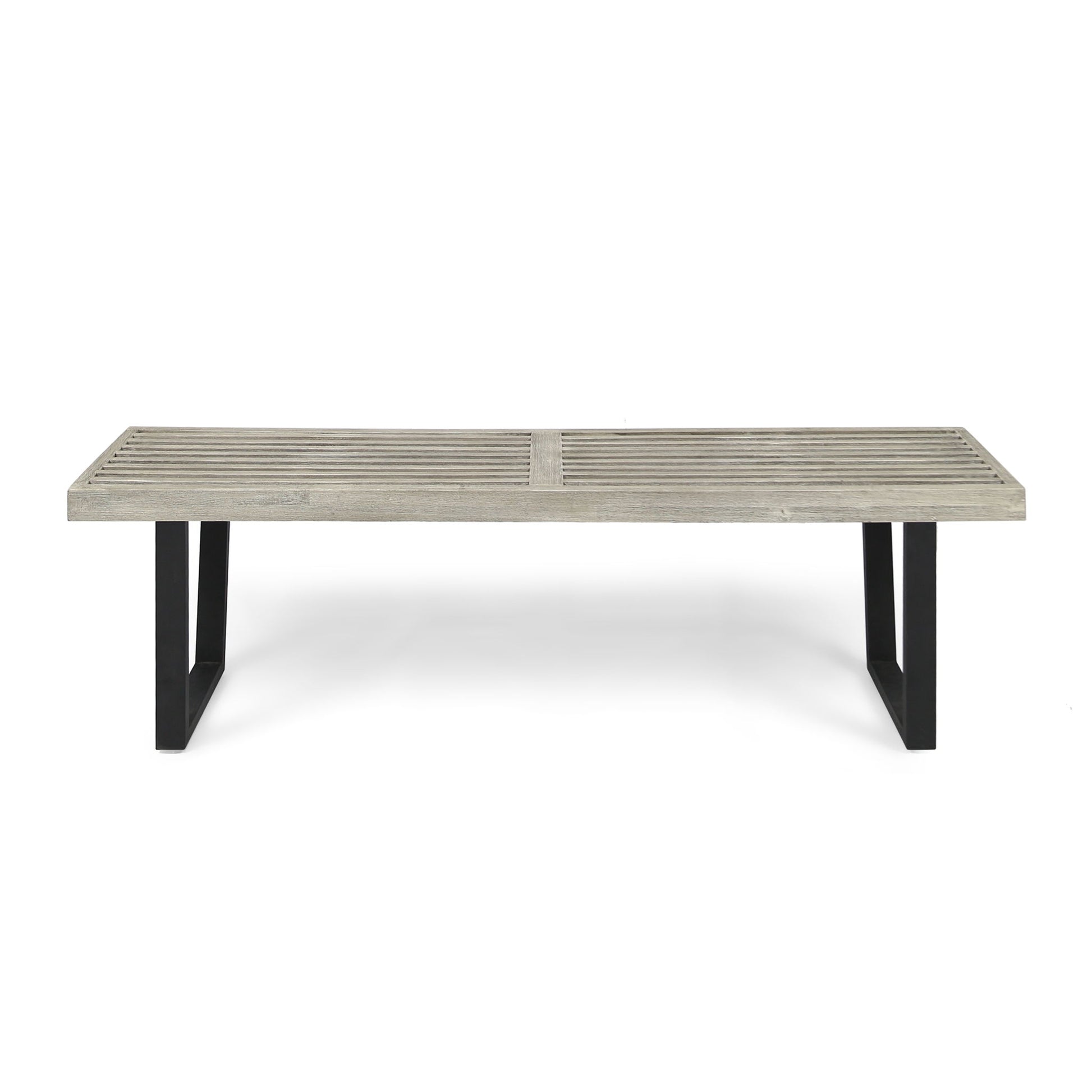 - Contemporary Design: Features a sleek, slatted acacia wood seat atop sturdy iron legs, offering a minimal and artistic aesthetic.