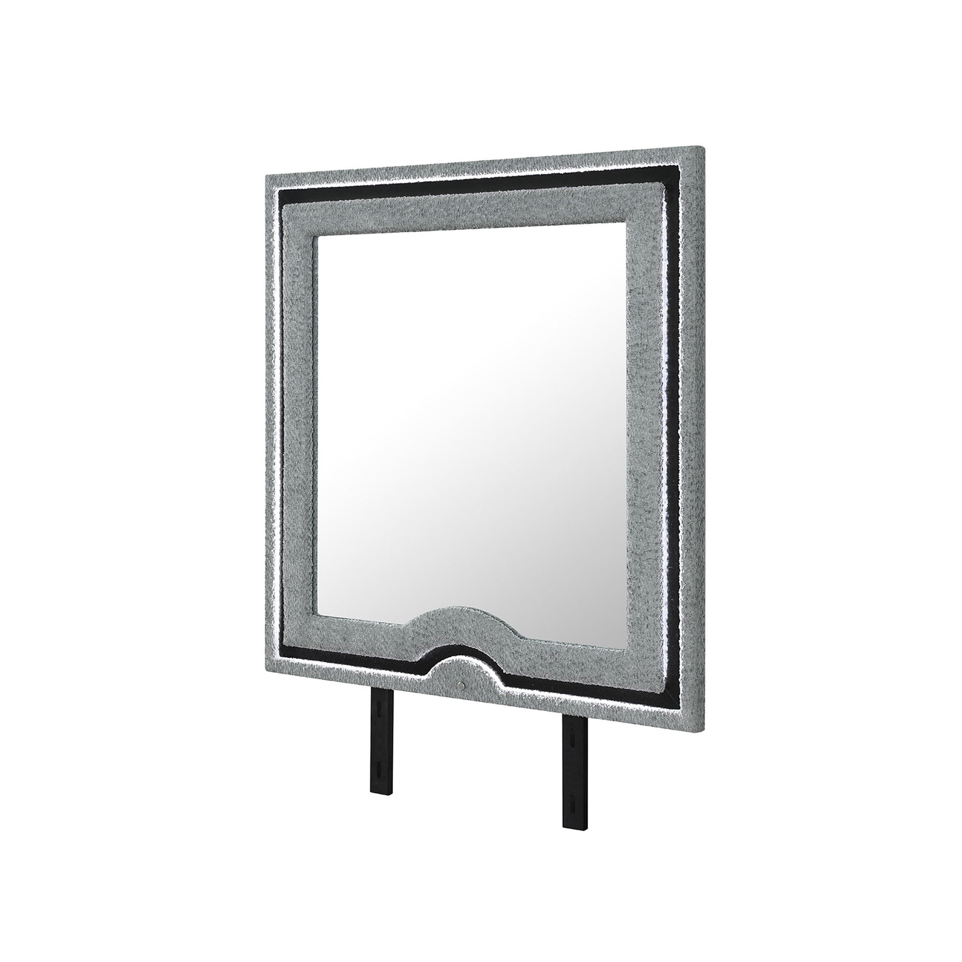 Isaiah - Mirror With Upholstered Frame And LED Lighting - Gray