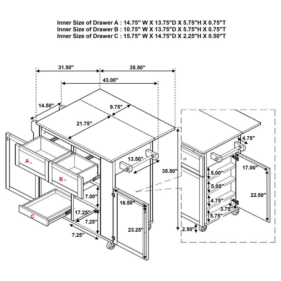 Jalen - 3 Door Mobile Kitchen Cart - Natural Brown And White