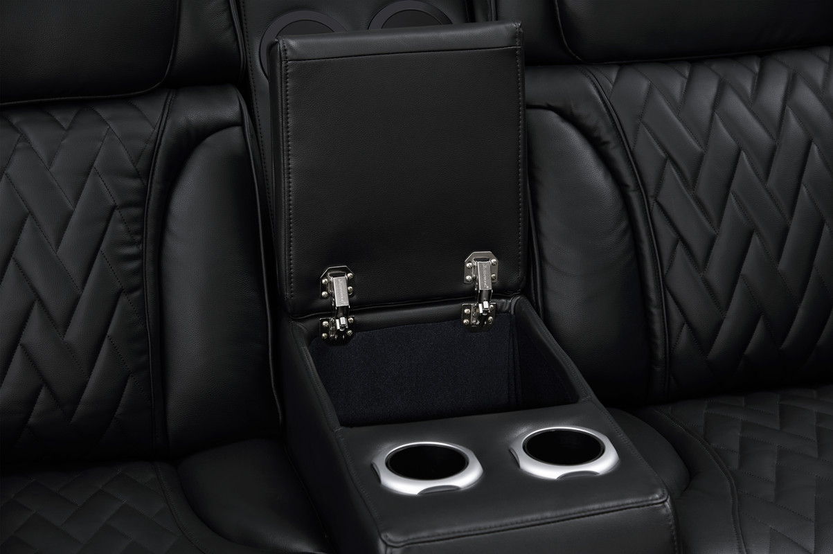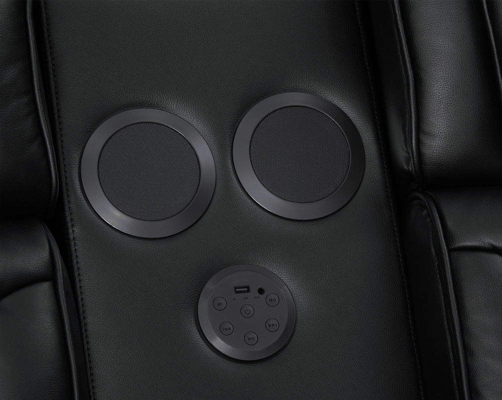 Jazz Black Leather Aire Transformer Power Reclining Sofa & Loveseat Living Room Set with Power Headrest, Bluetooth Speakers, LED Lights, Wireless Charging Drop-Down Table, USB & USB-C Ports, Storage & Cupholders