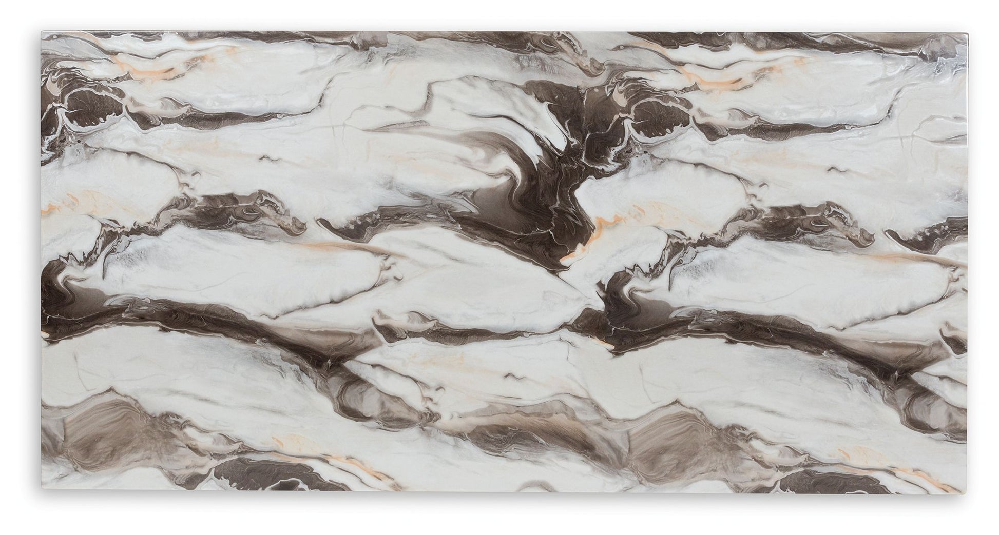 - Tabletop and double pedestal base with replicated marble pattern; polyester topcoat for lasting beauty